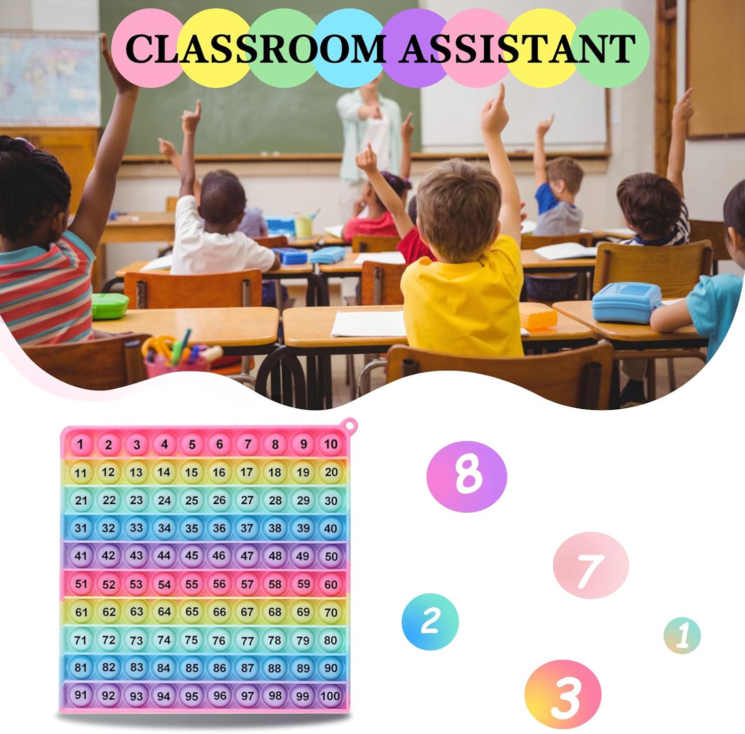 Rework studying right into a enjoyable, tactile expertise with this progressive 1-100 quantity studying pop fidget toy. The big sq. design options 100 numbered bubbles organized in a rainbow-colored grid, making it good for instructing counting, quantity sequences, and fundamental math ideas.