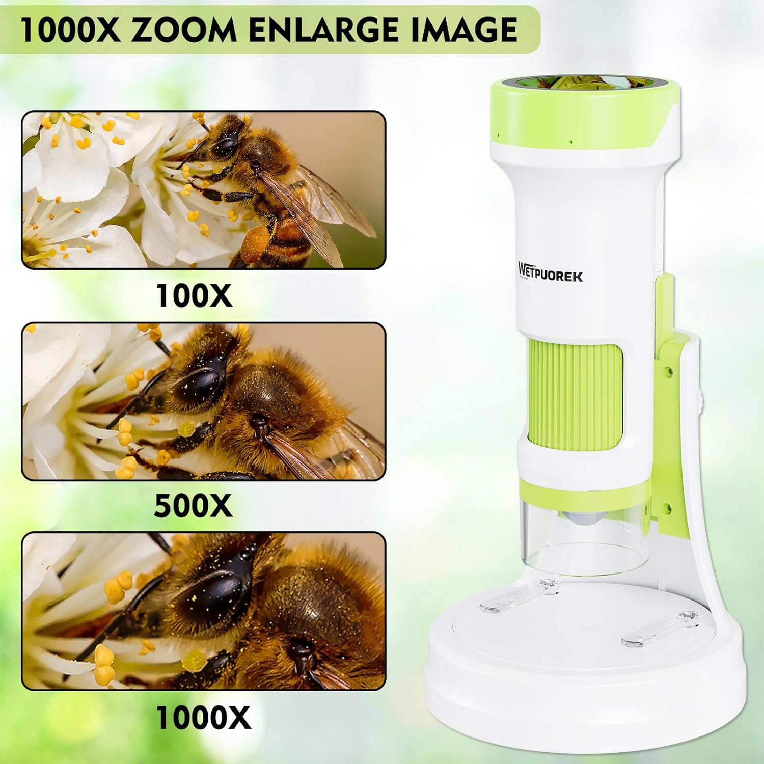 EXPLORE THE MICROSCOPIC WORLD: The Wetpuorek transportable microscope is a science and discovery toy designed for youths with a 100X-1000X zoom vary, permitting them to stand up shut and private with nature, discover the microscopic world, and find out about science!