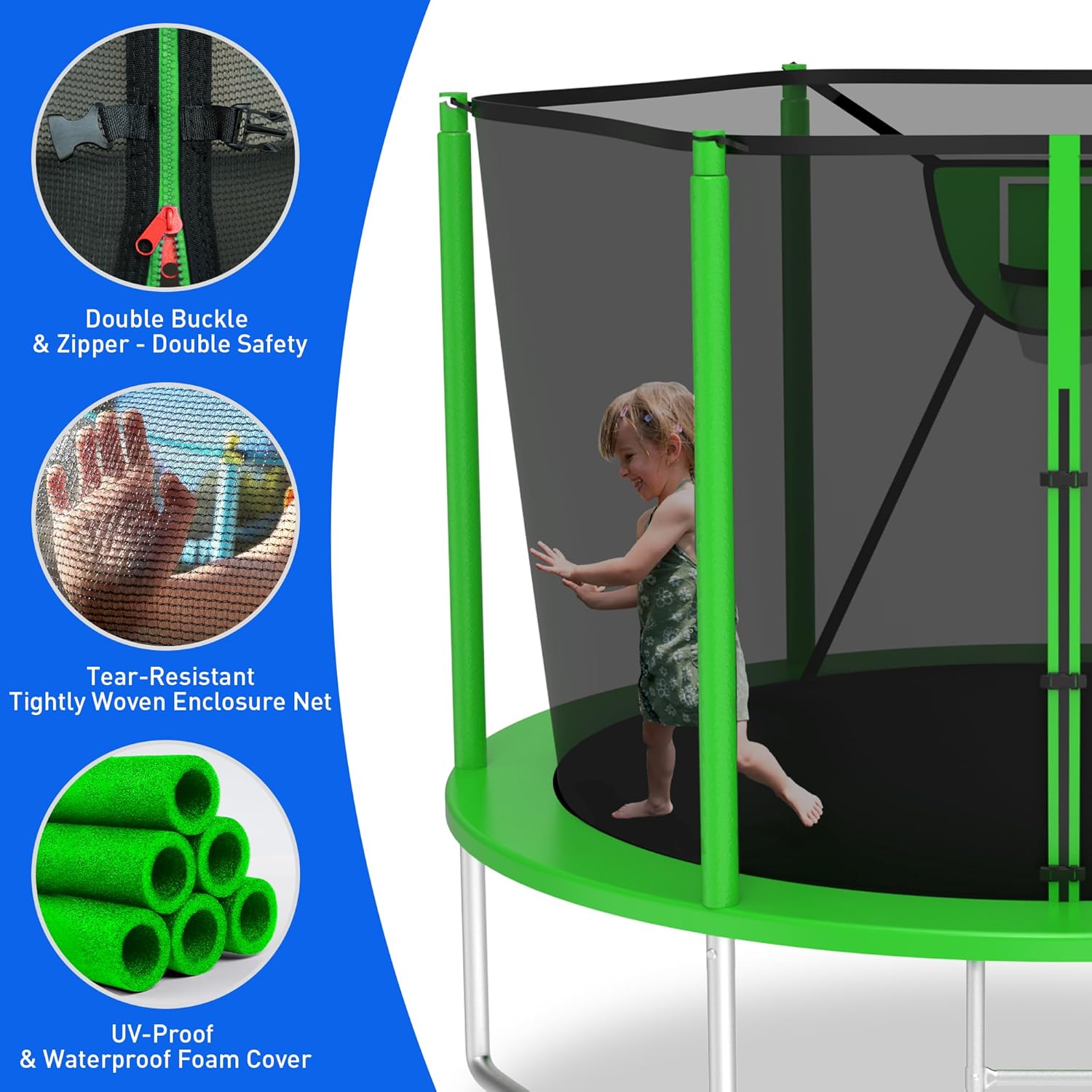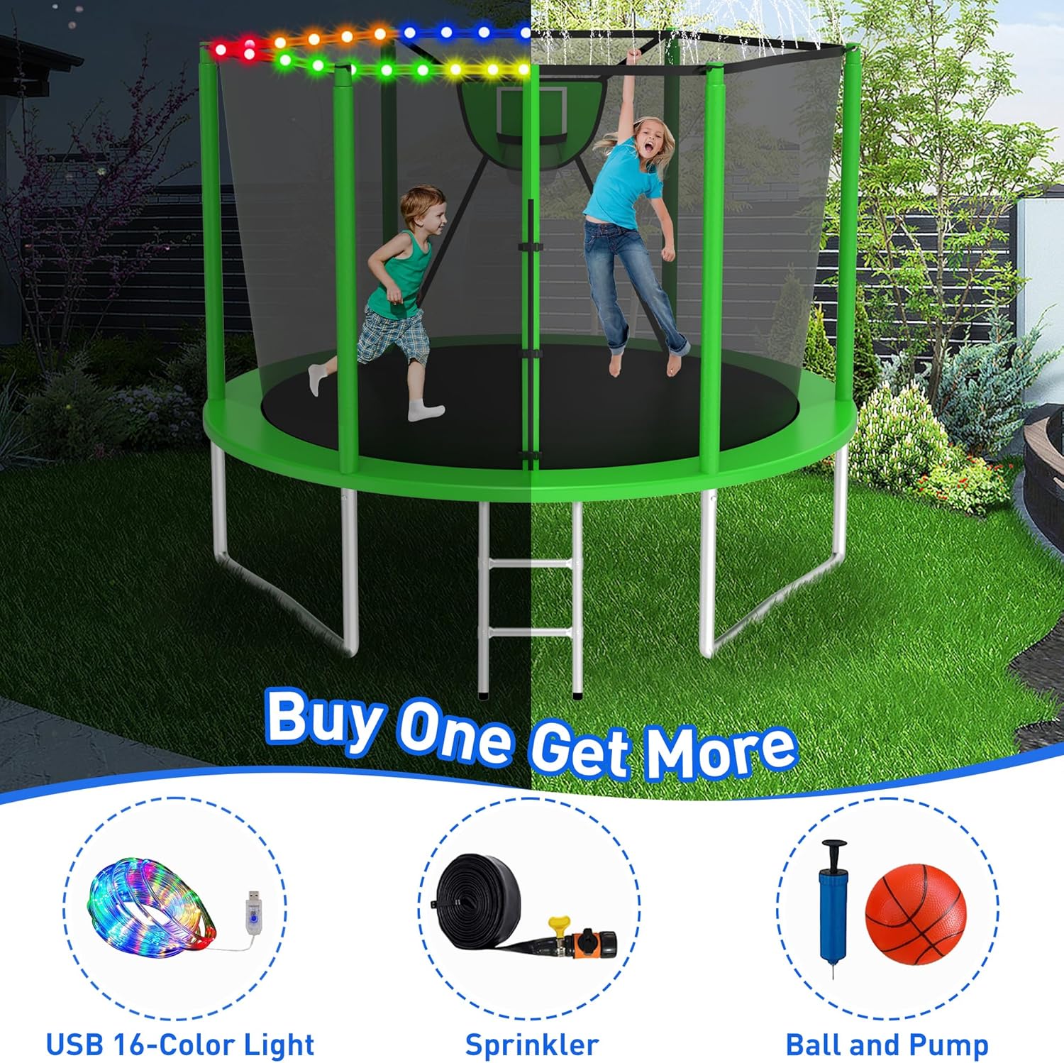 Product Abstract: XMIKA 1500LBS Tranpoline Out of doors with Gentle+Sprinkler+Socks, 8FT 10FT 12FT 14FT 16FT Giant Tranpoline with Basketball Hoop, Heavy-Obligation Leisure Tranpoline, Capability for 6-10 Children/Adults