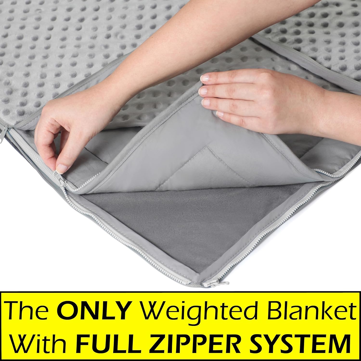 ✅ STOP STRUGGLING WITH WEIGHTED BLANKETS THAT BUNCH UP & WON’T STAY PUT. Why wrestle a bunched up weighted blanket again into place each evening & then attempt to safe it with ties that come free or break, when our Patented, Keep-Put, full zipper system permits you to simply zip 4 sides of your weighted blanket into its Minky cowl the place it stays put and by no means must be adjusted. The ONLY system of its type, this unique zipper expertise makes eradicating the cover cowl for laundry a snap.
