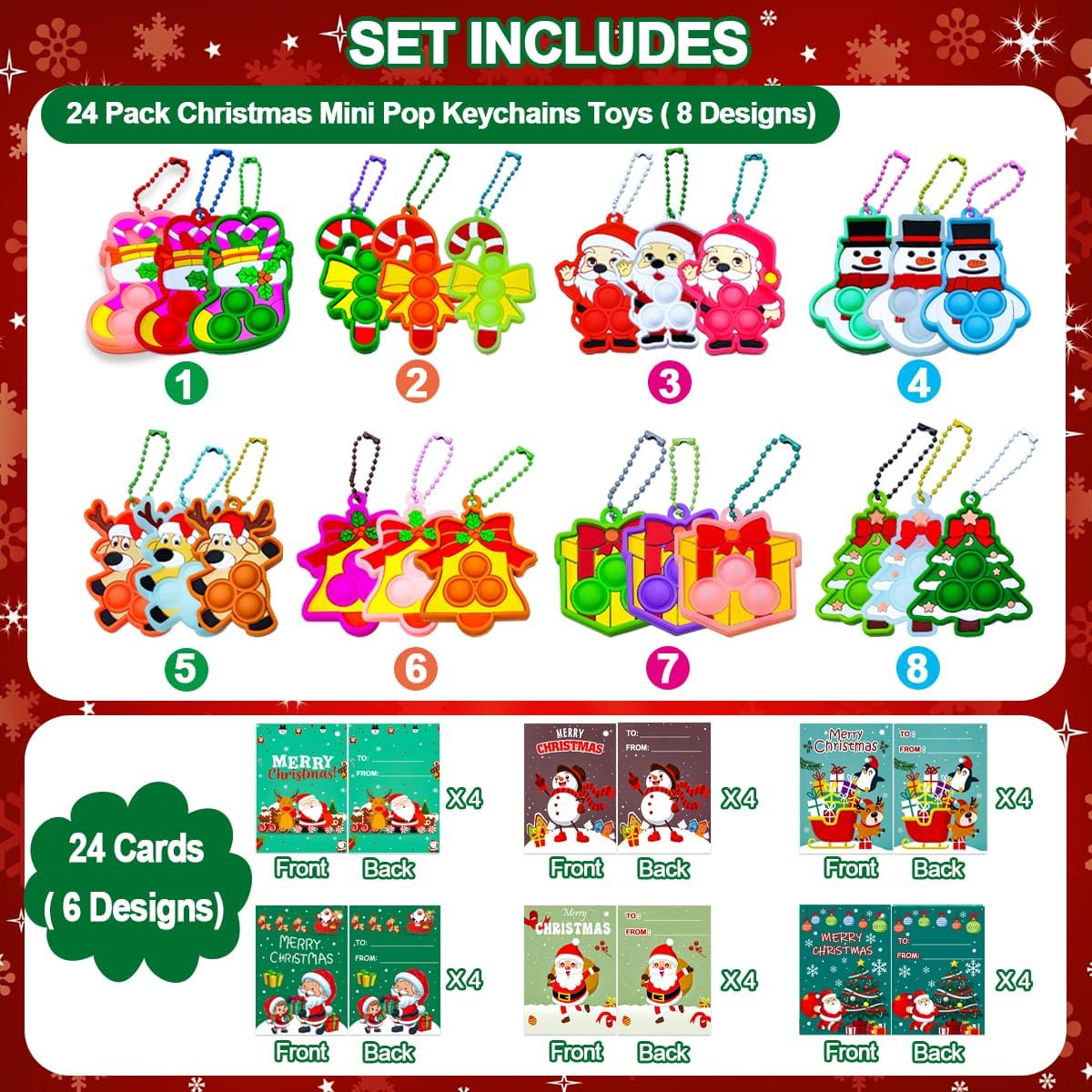 【CHRISTMAS GIFTS FOR KIDS】Cute christmas items for teenagers. You should utilize chains to string christmas pop its and playing cards collectively to your youngsters.You’ll be able to write your christmas needs and blessings.This Christmas mini pop keychain is ideal as a Christmas present for teenagers, classmates, household and mates, bringing countless pleasure to your family and friends! Ideally suited christmas favors for teenagers, small christmas items for teenagers, items for classroom youngsters christmas, bulk youngsters christmas items
