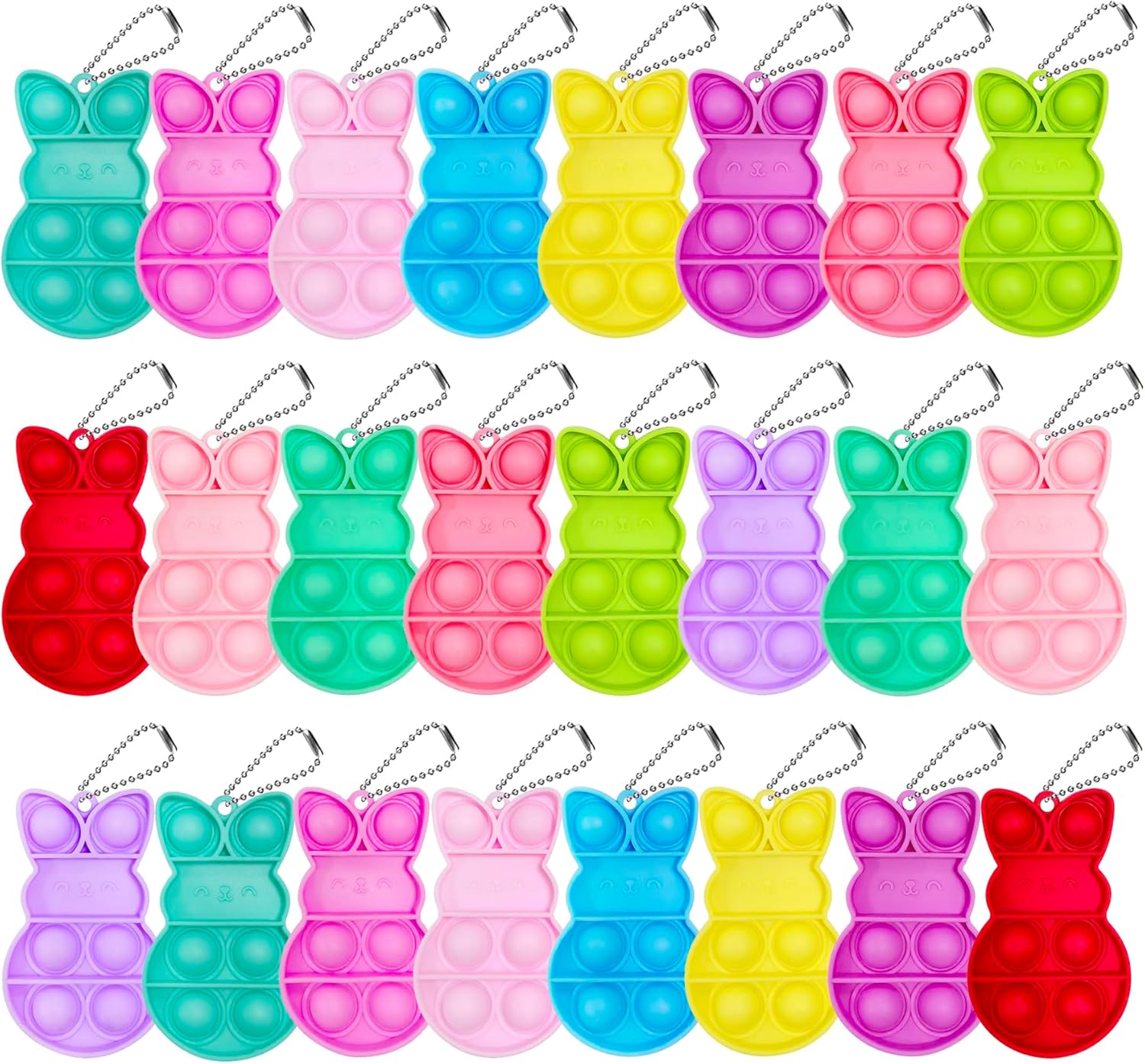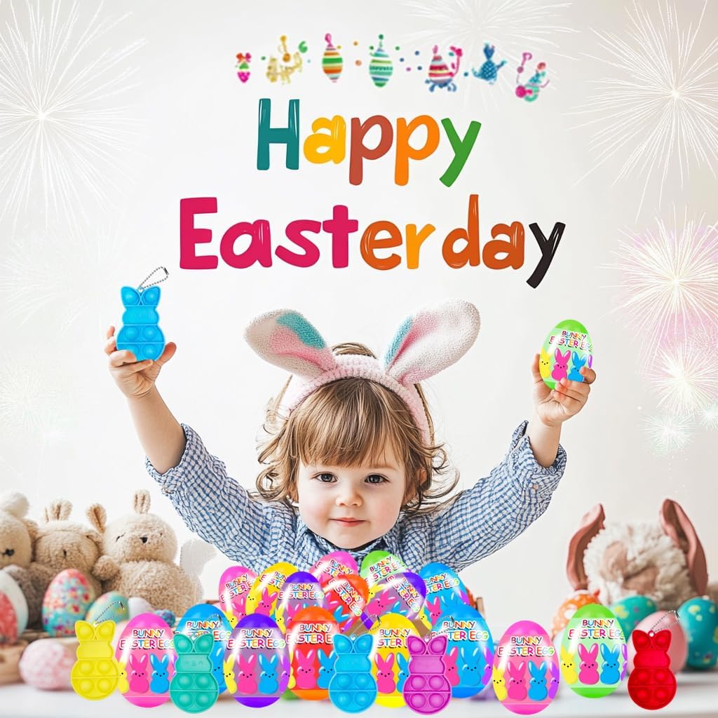 Bunny Pop Bubble Fidget Keychains: Every egg comprises a cute bunny pop bubble fidget keychain toy, offering a enjoyable and stress-relieving expertise.