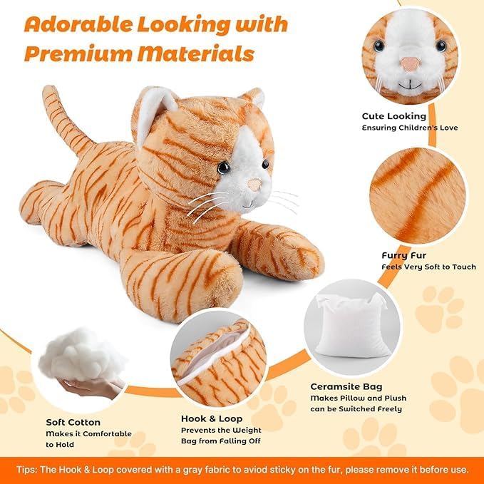 Versatile Benefit: This weighted cat stuffed animal could make you’re feeling huggable with out being too heavy. With the detachable weighted bag design, it isn’t solely a big weighted stuffed animal, a smooth pillow plush as nicely and no want to fret concerning the cat doll’s exterier getting soiled as it’s tremendous straightforward to wash by hand wash. Don’t wash the inside detachable bag accidentally.