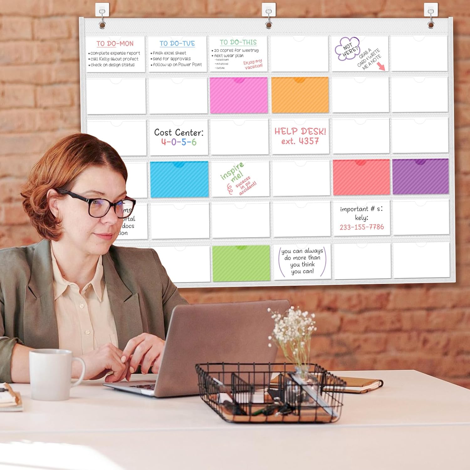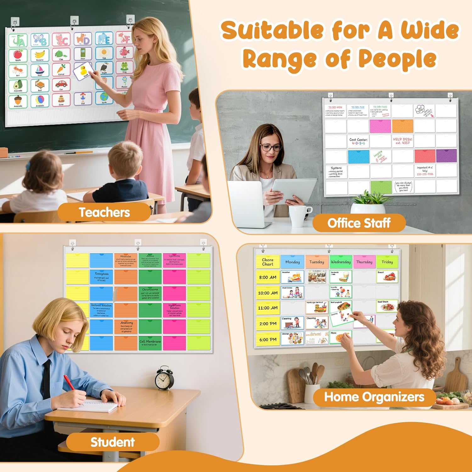 Streamline Workflow Monitoring: Keep on high of your duties and tasks with our workflow pocket chart. Use the 36 pockets to create a visible workflow system by assigning completely different playing cards to every slot. Monitor mission progress, deadlines, and each day to-dos with ease. This wall-mounted organizer is ideal for workplace use, classroom administration, or residence group, serving to you obtain your objectives effectively.