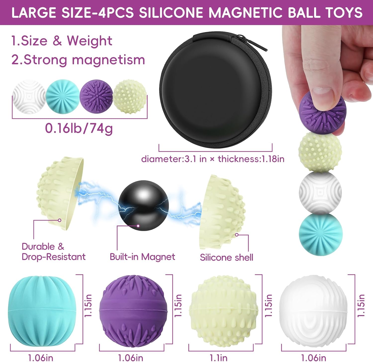 Inventive Fidget Toy:4-Pack Magnetic Stress Balls for Nervousness Aid & Focus, The weighted magnetic cores ship simply the proper resistance, making them good for fidgeting, hand workouts, and stress reduction.