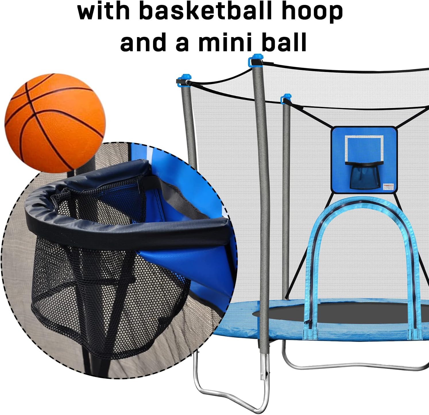 Jumptastic toddler trampoline include basketball hoop and a mini ball, the ring’s peak may very well be modify by the strap’s size to appropriate for teenagers in numerous age. and the basketball hoop is include sorts of soppy elements, it is secure on your children