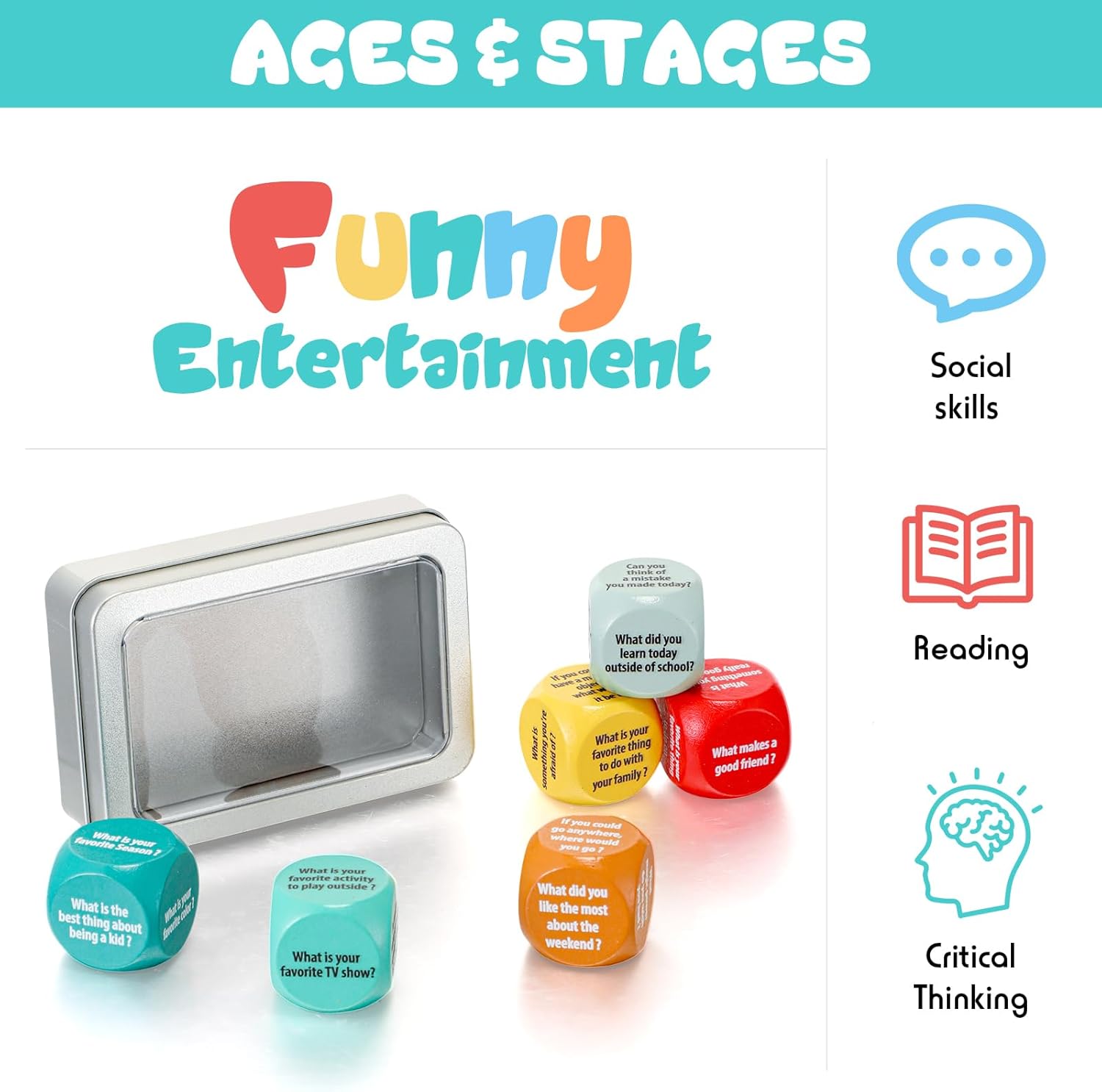 Versatile and Inspiring: these dialog cube can be found in 6 vibrant colours, every with distinctive questions to make sure every roll generates a contemporary and thrilling matter, providing a inventive and enjoyable approach to develop wholesome social emotional studying abilities; Whereas studying tips on how to establish, perceive, and really feel interior emotions, you may additionally develop the talents it’s essential make pals, grasp teamwork, and reside a happier, more healthy life