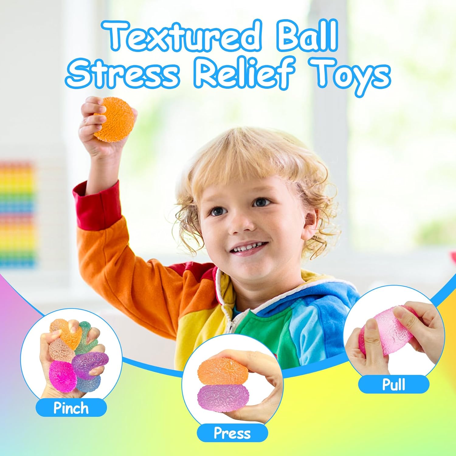 Textured Ball Fidget Toy – The sugar ball squishy is a novel stress-relieving toy. When feeling nervous or anxious, gently squeezing the sensory toy ball can assist launch pressure, offering consolation and leisure. Moreover, it strengthens the muscle groups of the palms, wrists, and forearms. When you’re searching for a easy, fast, and efficient technique to alleviate stress, this youngsters’s squeeze ball fidget toy is a superb alternative.​