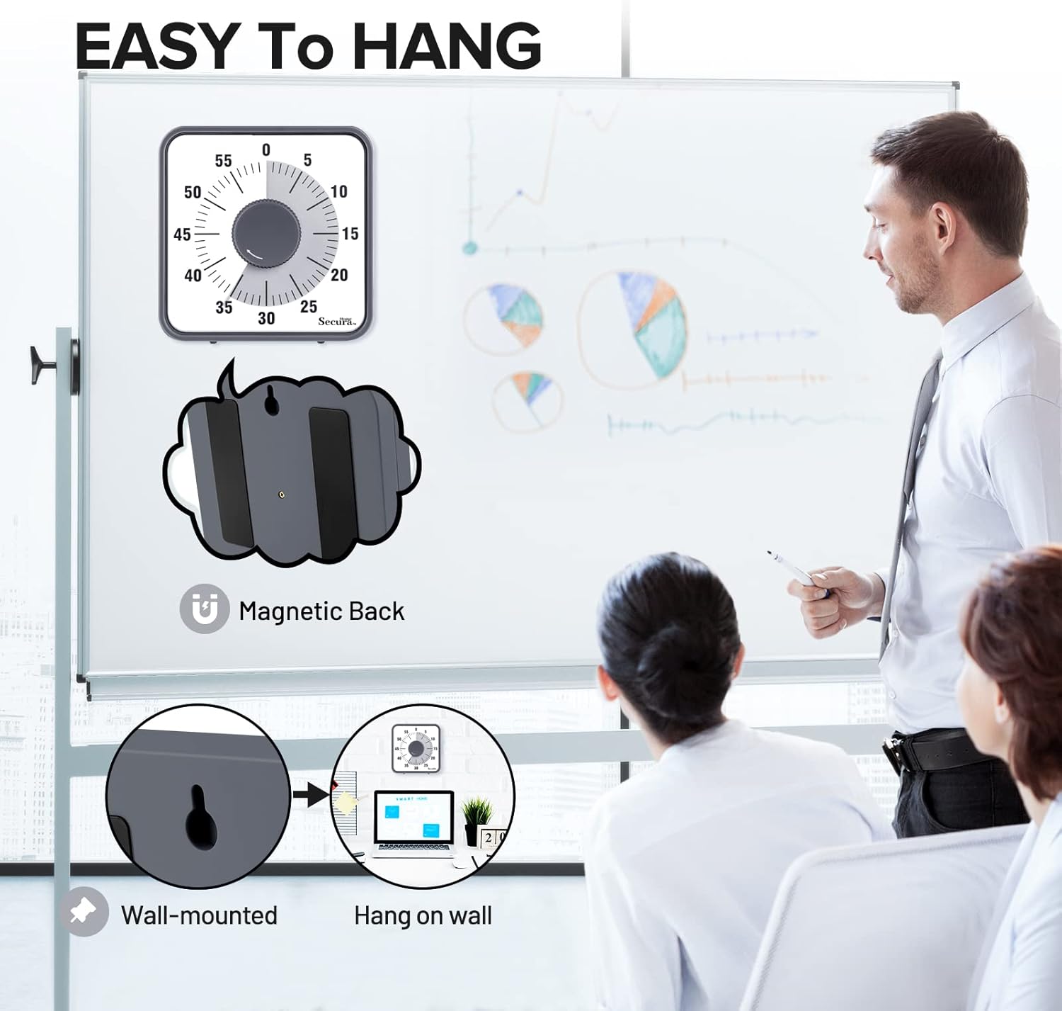 ⏱ 🕐SMALLER FOOTPRINT WITH MULTIPLE PLACEMENT OPTIONS – 1) Options two highly effective magnetic backing panels making it ultimate to position on fridges, ovens, utility cupboards, whiteboards, and extra! 2) The 2 foldable legs on the underside can open up for placement on flat surfaces like desks and counter tops. 3) Simply wall mounted.