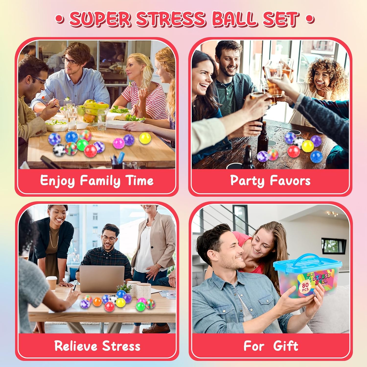 🌈【80 Pack Stress Balls Set】You’ll get 16 totally different colours of stress ball, 5 for every colour. The stress ball is cute and comfortable squishy ball that measures 1.4 inches and matches completely within the palm of the arms. These balls are very fascinating, might be squeezed arbitrarily to alleviate stress and create leisure.
