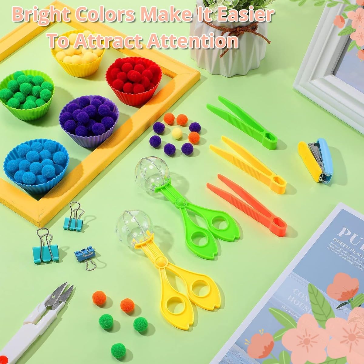 Plentiful Equipment: The tremendous motor software set consists of 6 silicone color-sorting cups, 4 tweezers, 2 scissors, and 70 colourful plush balls (10 of every of seven colours). The ample variety of equipment meets numerous play wants and permits for alternative, offering a long-lasting play expertise.