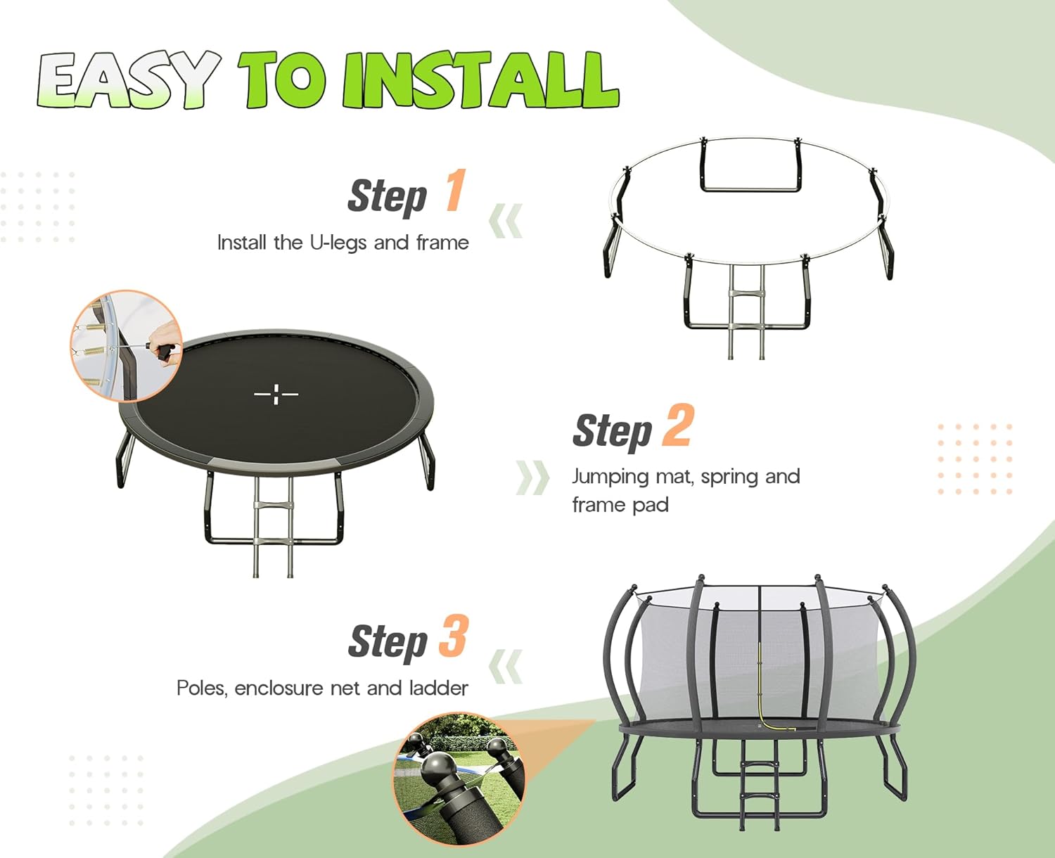 Straightforward to put in: Designed for simple set up, 10 ft trampoline incorporates a sturdy four-way joint for added stability. The poles join with a easy snap-on system, requiring no complicated instruments. Clear step-by-step directions guarantee a fast and environment friendly setup.