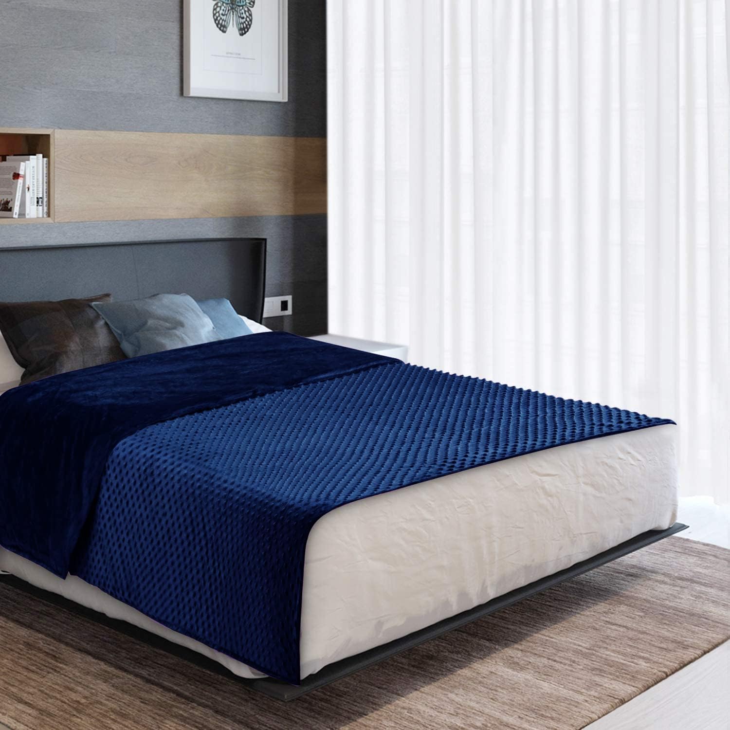 • Acdyion Weighted Blanket with Removable Duvet Cover for Adults Queen Size (60″x80″), Heavy Blanket Cover with Soft Minky and 12 Ties, Machine Washable (Navy)