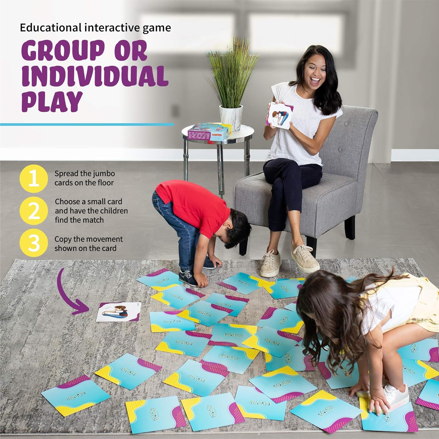 How To Play – Maintain up the small present card and have the kid discover the matching jumbo flooring card – then do the motion!