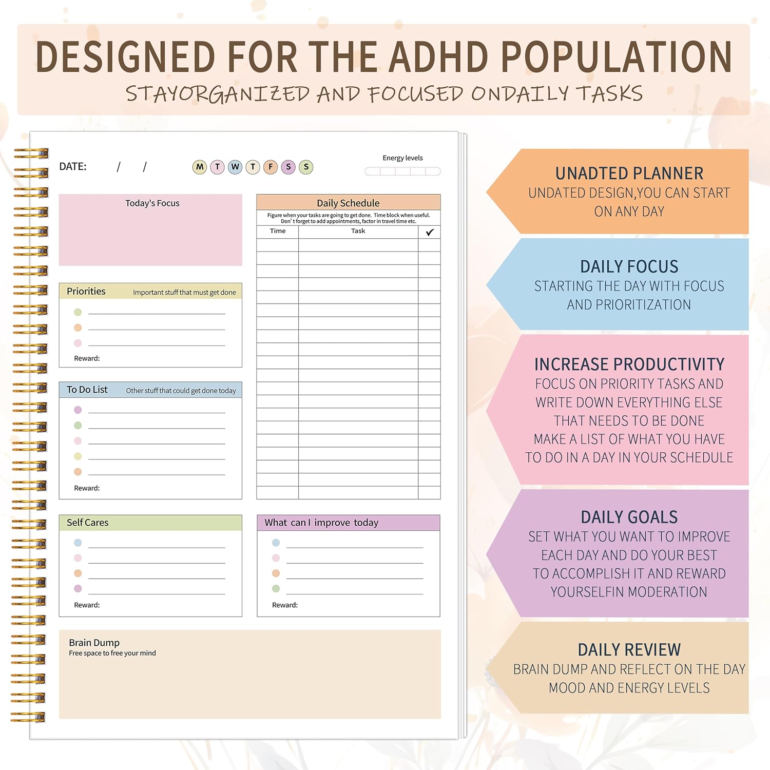 Keep Organized and Centered: This planner is particularly designed to assist people with ADHD or busy life prioritize their day with clear prompts, making certain that an important duties are tackled first