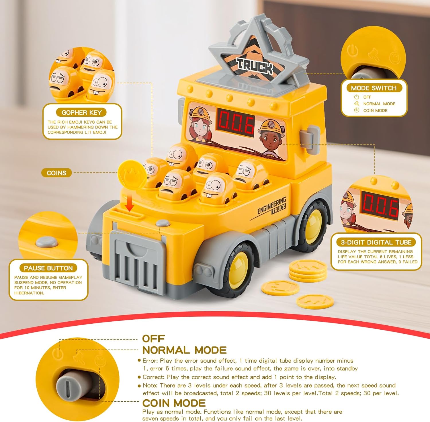 • AMACAT-Whack A Frog Game with 2 Hammers, Toddler Early Developmental Learning Toy, Fun Birthday Gift for Kids Age 3+, Toys for 2 3 4 Year Old Boys Grils.PK Mode (Yellow Whack-a-mole)