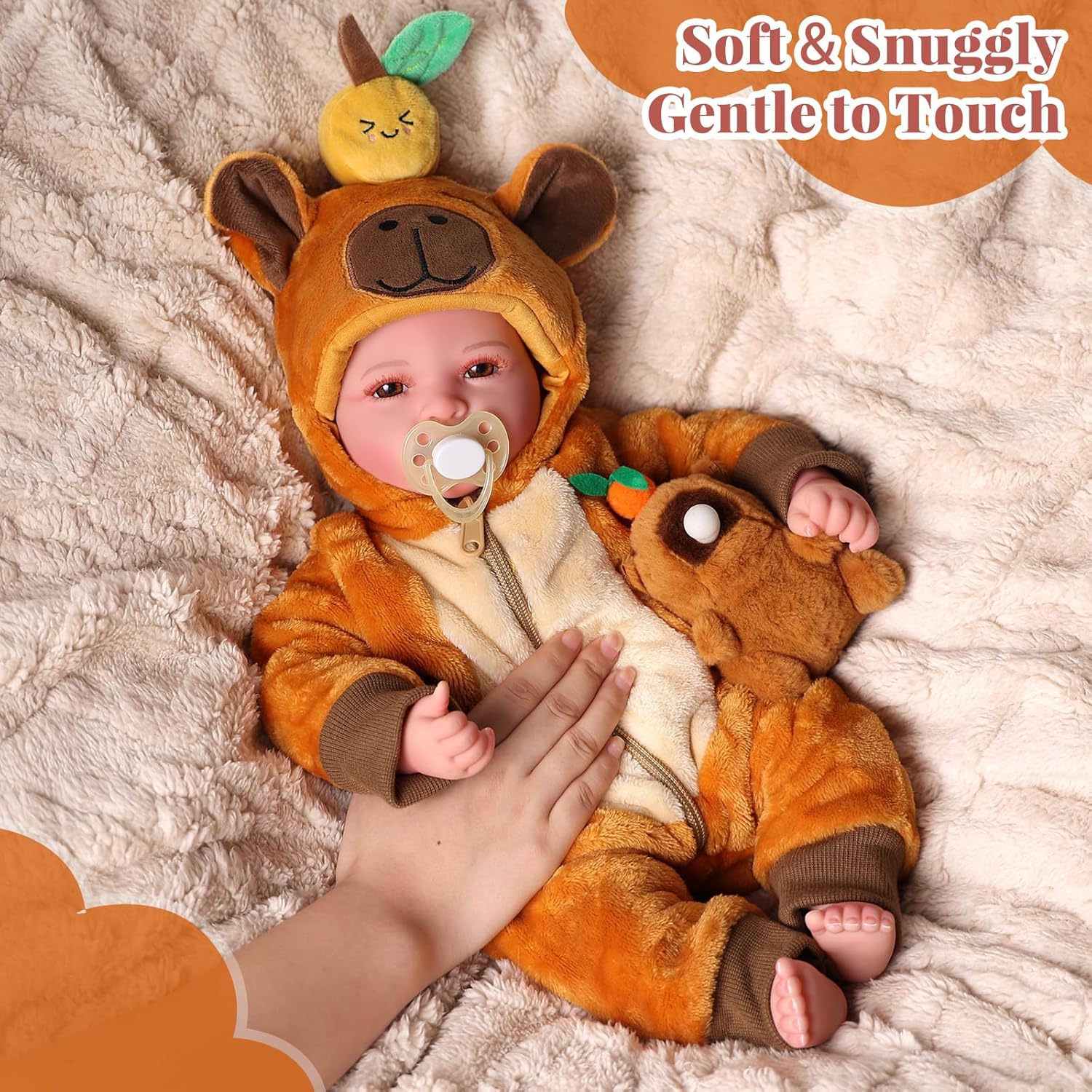 Cute Capybara Outfit & Plush Toy: Wearing a cute outfit, this child doll additionally comes with an identical plush toy for added enjoyable. This distinctive mixture brings additional pleasure to your youngster’s faux play and encourages imaginative storytelling.