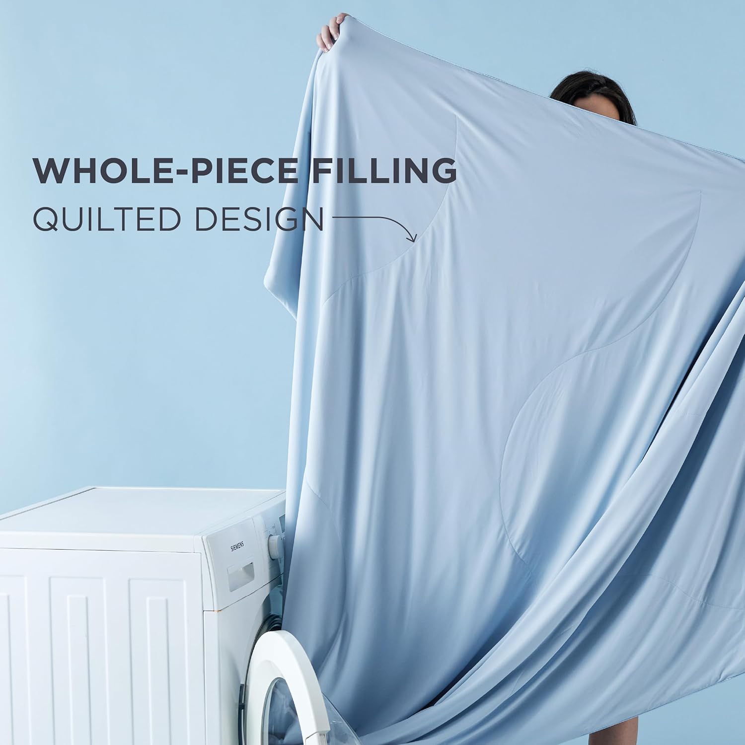 • QUTOOL Cooling Comforter Queen Size, Double-Sided Cooling Blankets for Hot Sleepers and Night Sweats, Silk Smooth Ice Cool Comforter with 2 Pillowcases, Breathable & Lightweight Blue, 90″x90″