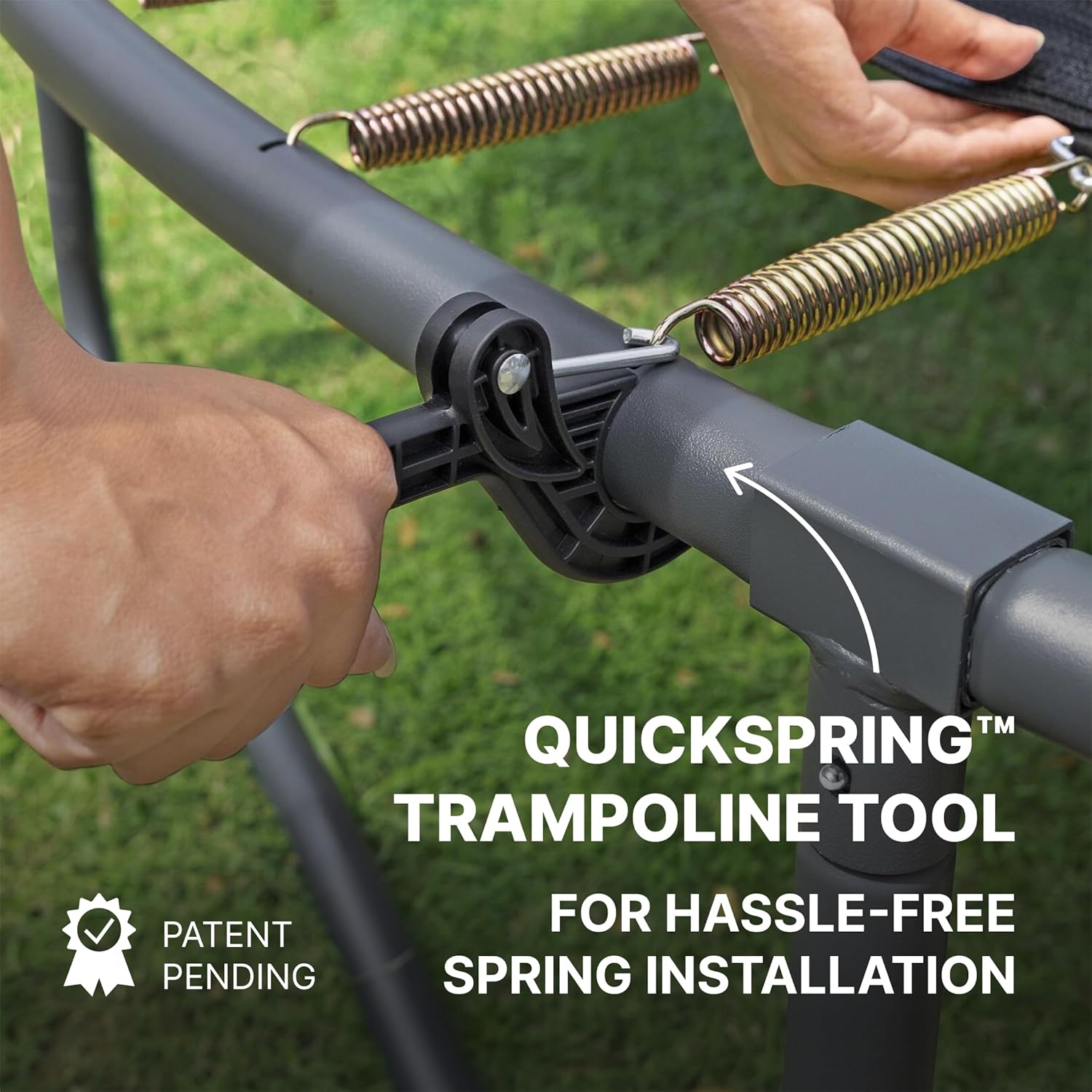 ENHANCED SUPPORT: Geared up with 56 galvanized springs for superior bounce, together with a heavy-duty spring pad and leaping mat designed for long-lasting sturdiness.