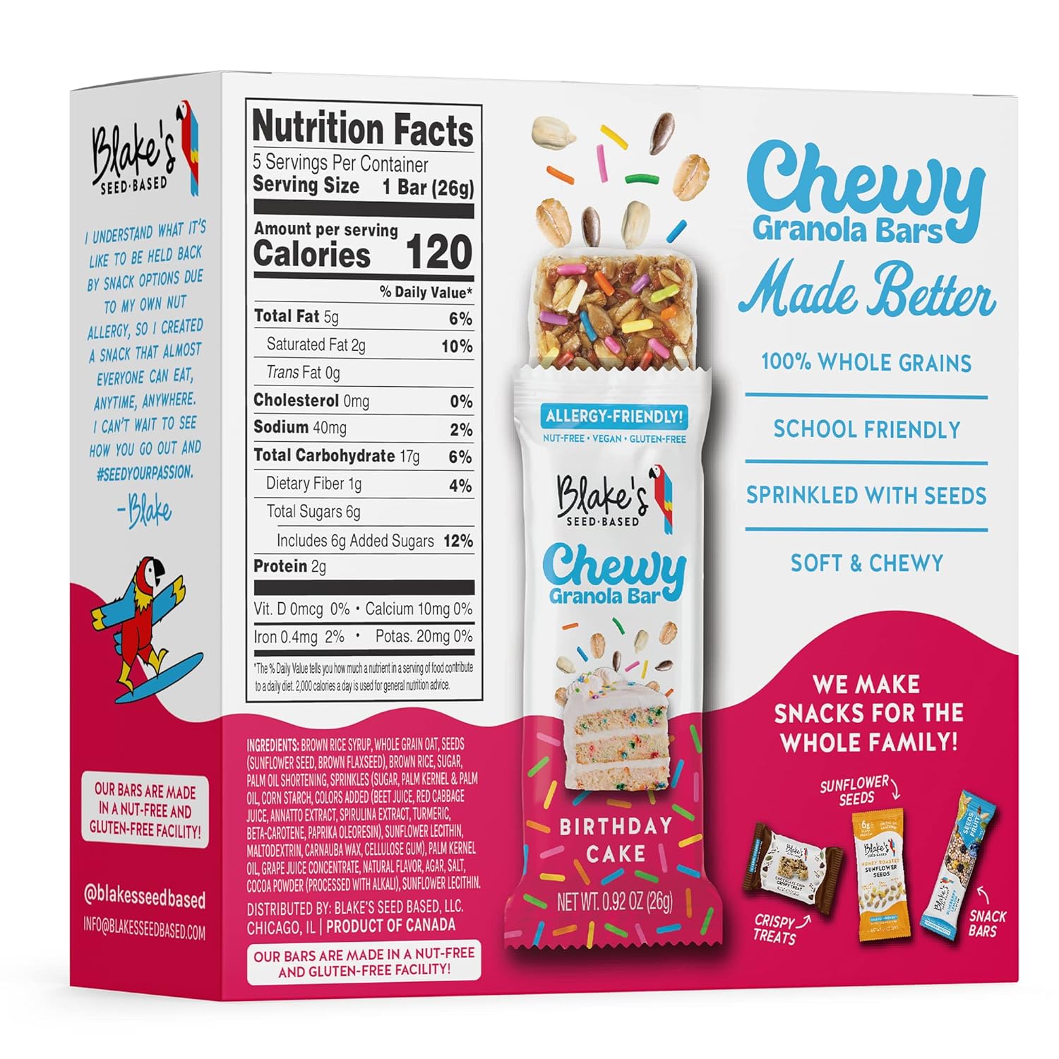 Blake’s Seed Based mostly Chewy Granola Bars — Birthday Cake (5 Rely), Vegan, Gluten Free, Nut Free & Dairy Free, Wholesome Snacks for Children or Adults, College Secure, Low Calorie Soy Free Snack