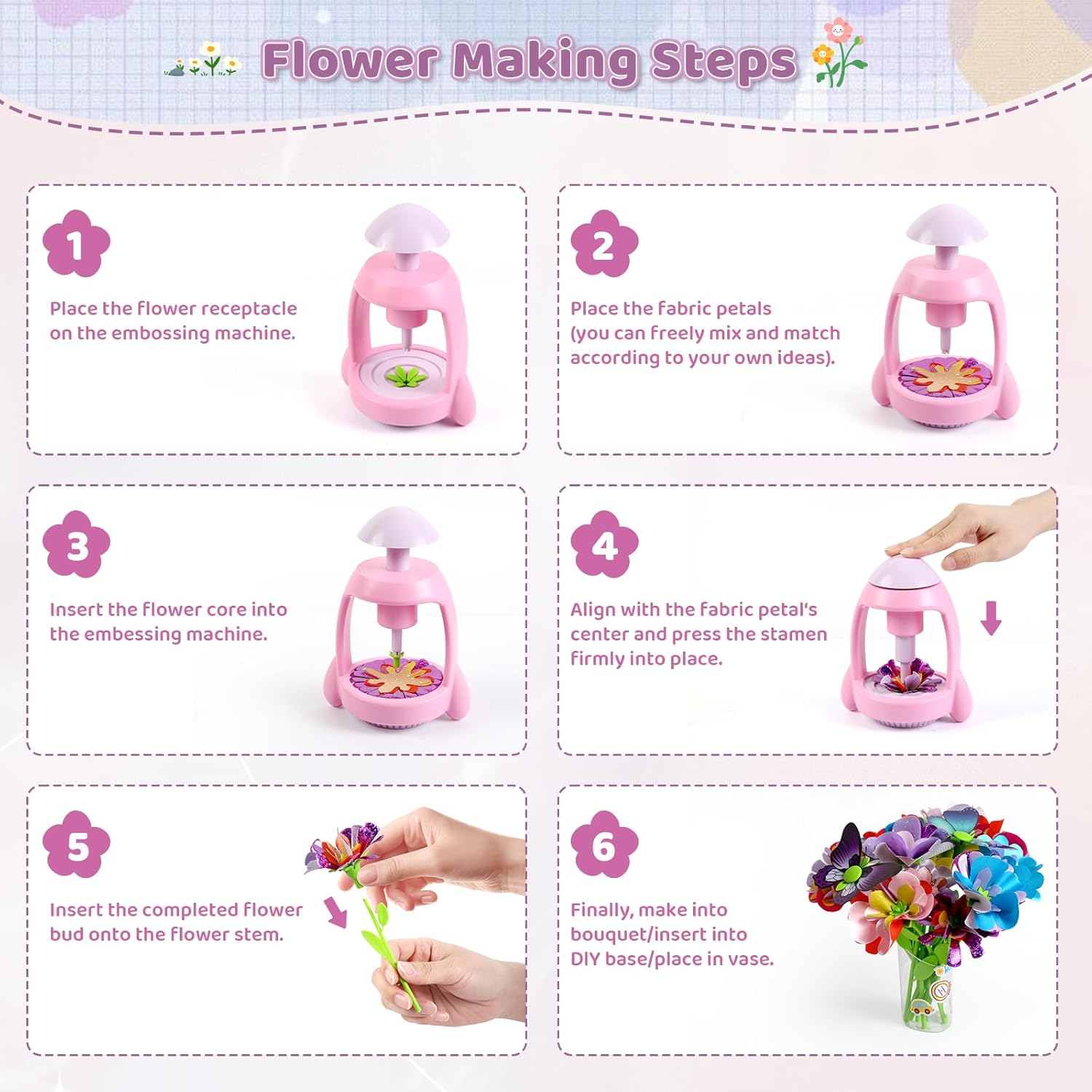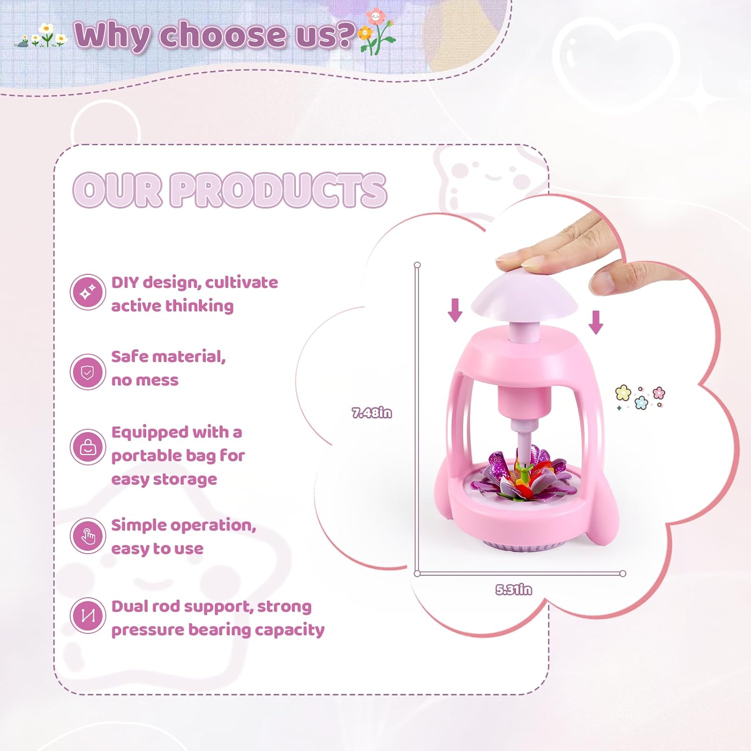【Artistic DIY Flower Equipment】Our flower press is straightforward to make use of and manufactured from secure, sturdy supplies and a sturdy design, making certain it is appropriate for youngsters aged 3-12. It ensures stability and security whereas youngsters design their very own distinctive cloth flower bouquets. Let your little one totally expertise the enjoyment of the crafting course of, inspiring their creativeness and creativity