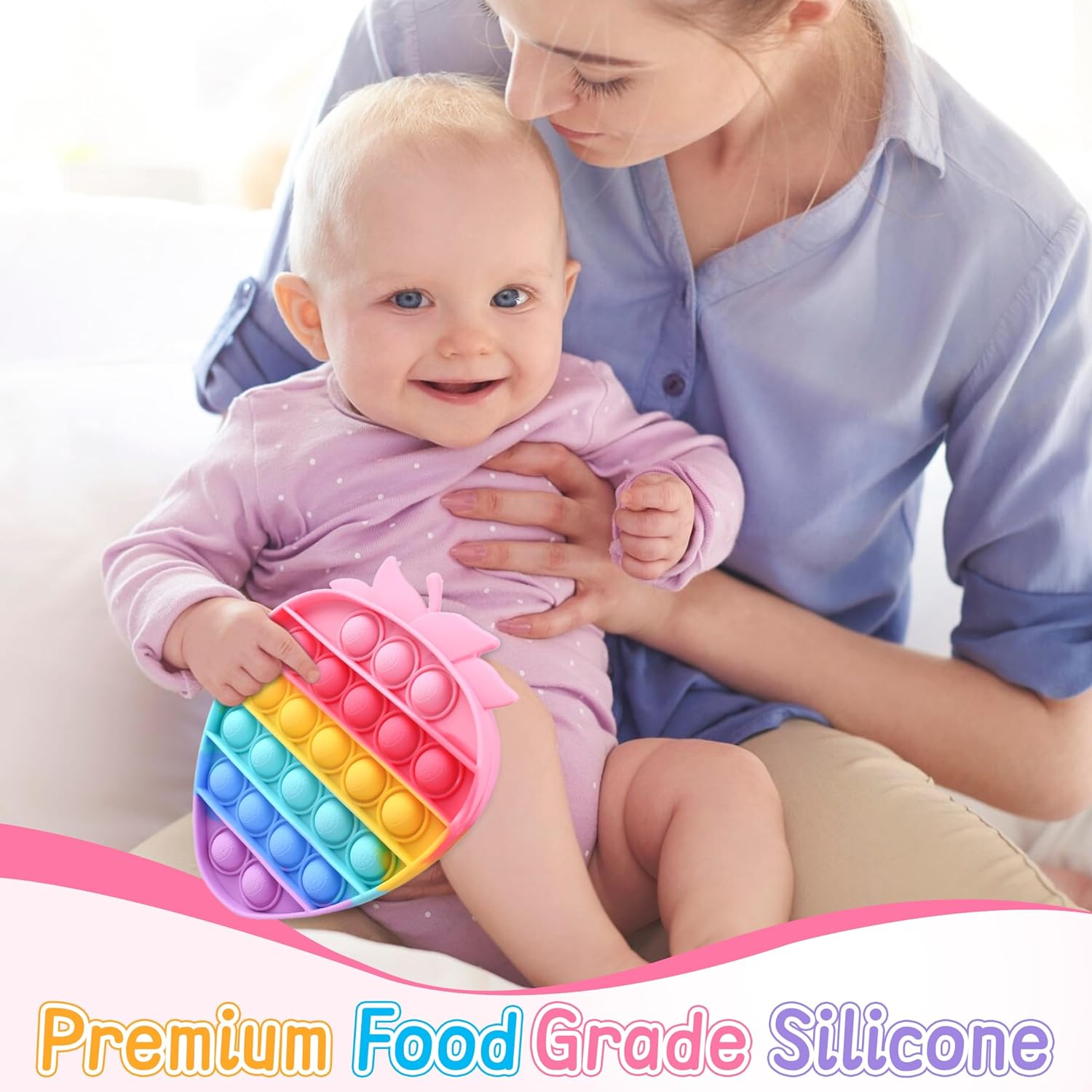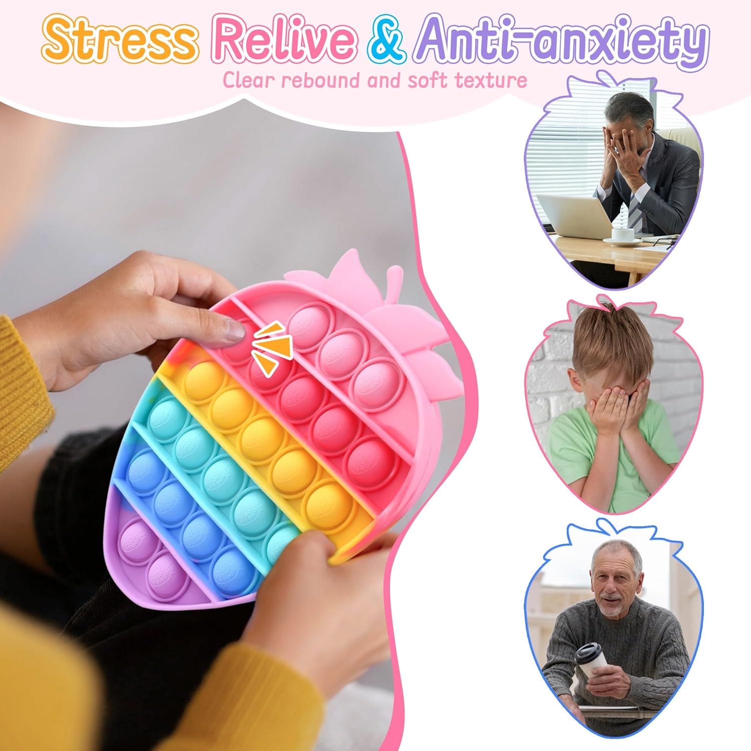 Bubble Fidget Sensory Toys,Cute Push Silicone Squeeze Toy for Autism Anxiety Stress Relief Small Strawberry Toddler Fidgets Party Travel Office Classroom Gifts for Kids Girl Boy Adults
