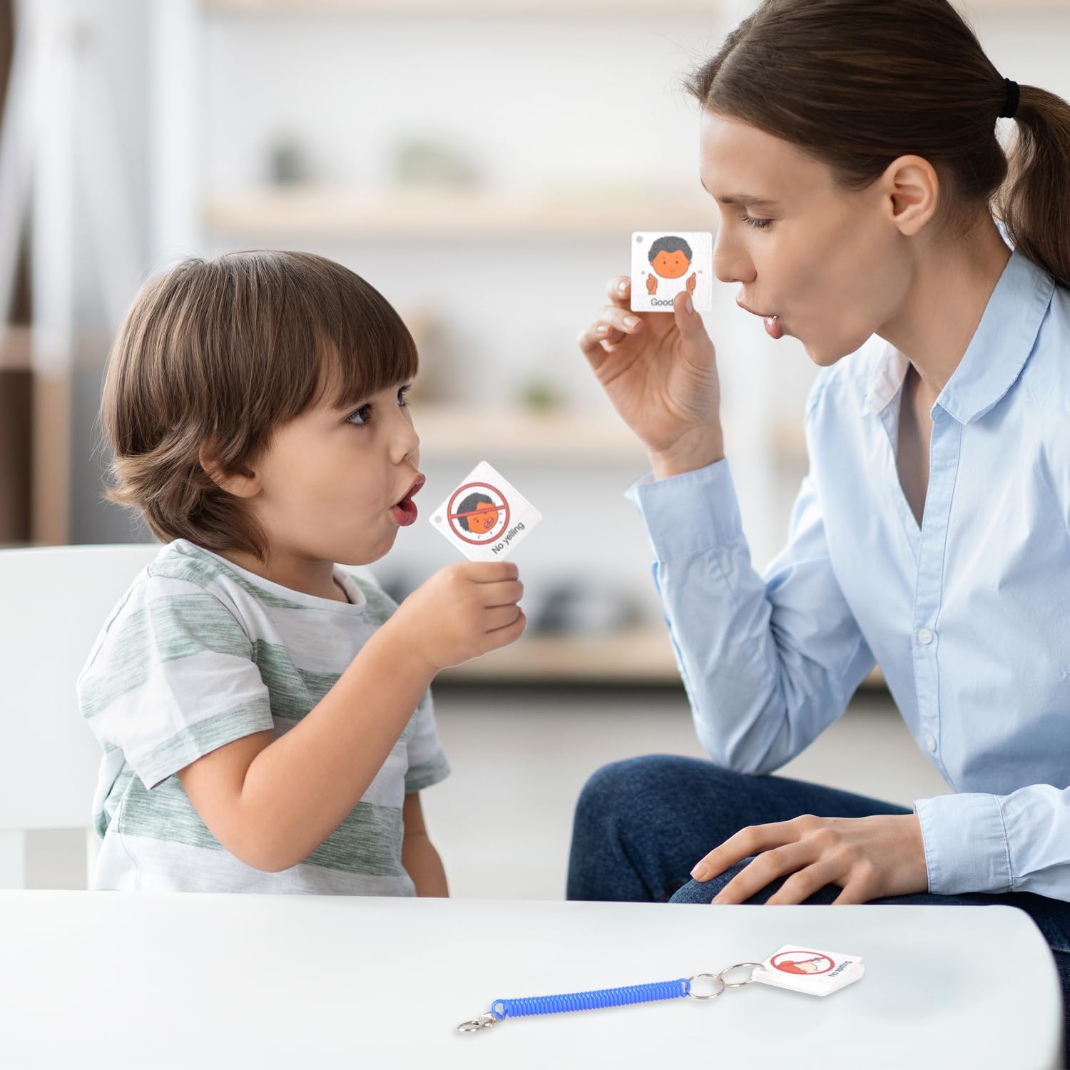 CHEFAN Autism Communication Card for Special Education, Speech Delay Nonverbal, ADHD, Visual Aid Feelings Emotions 40pcs Pocket Flash Cards for Special Need, Language Learning Cue Cards for Kids