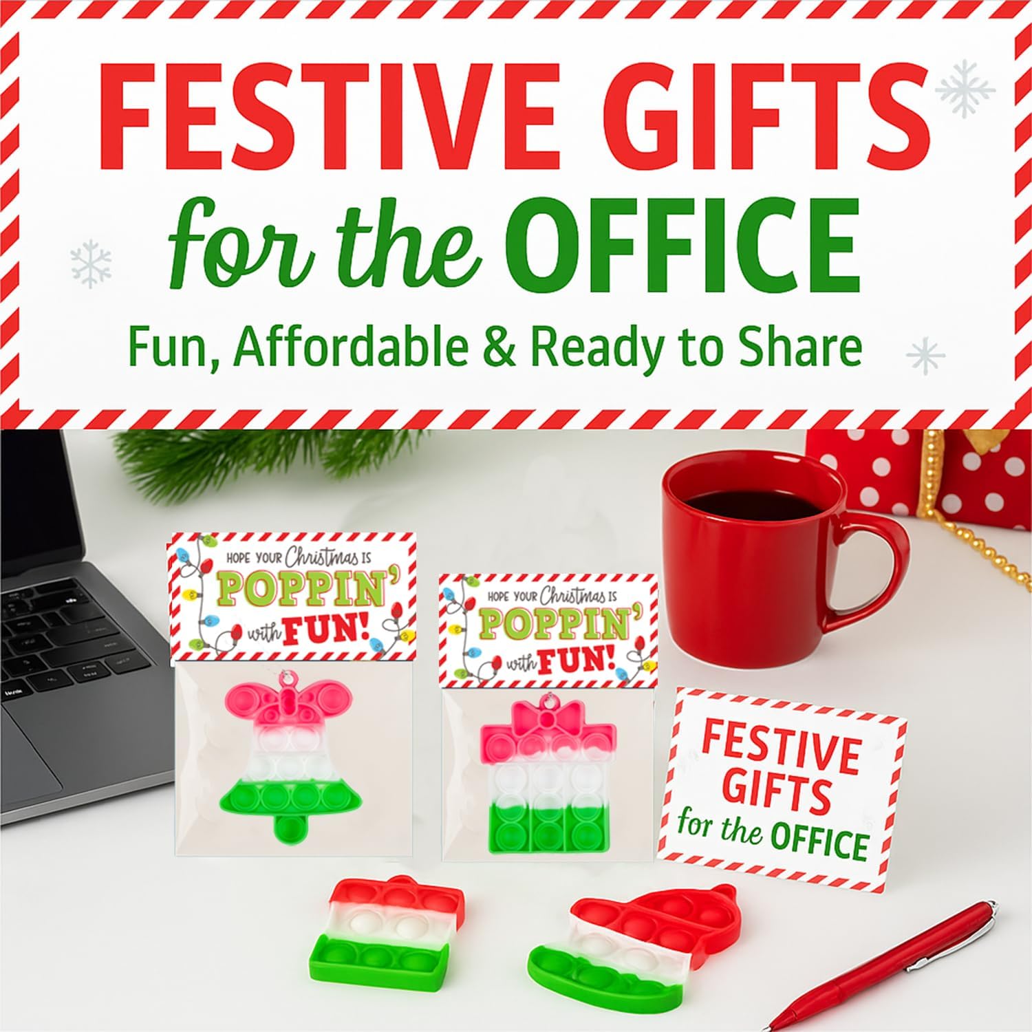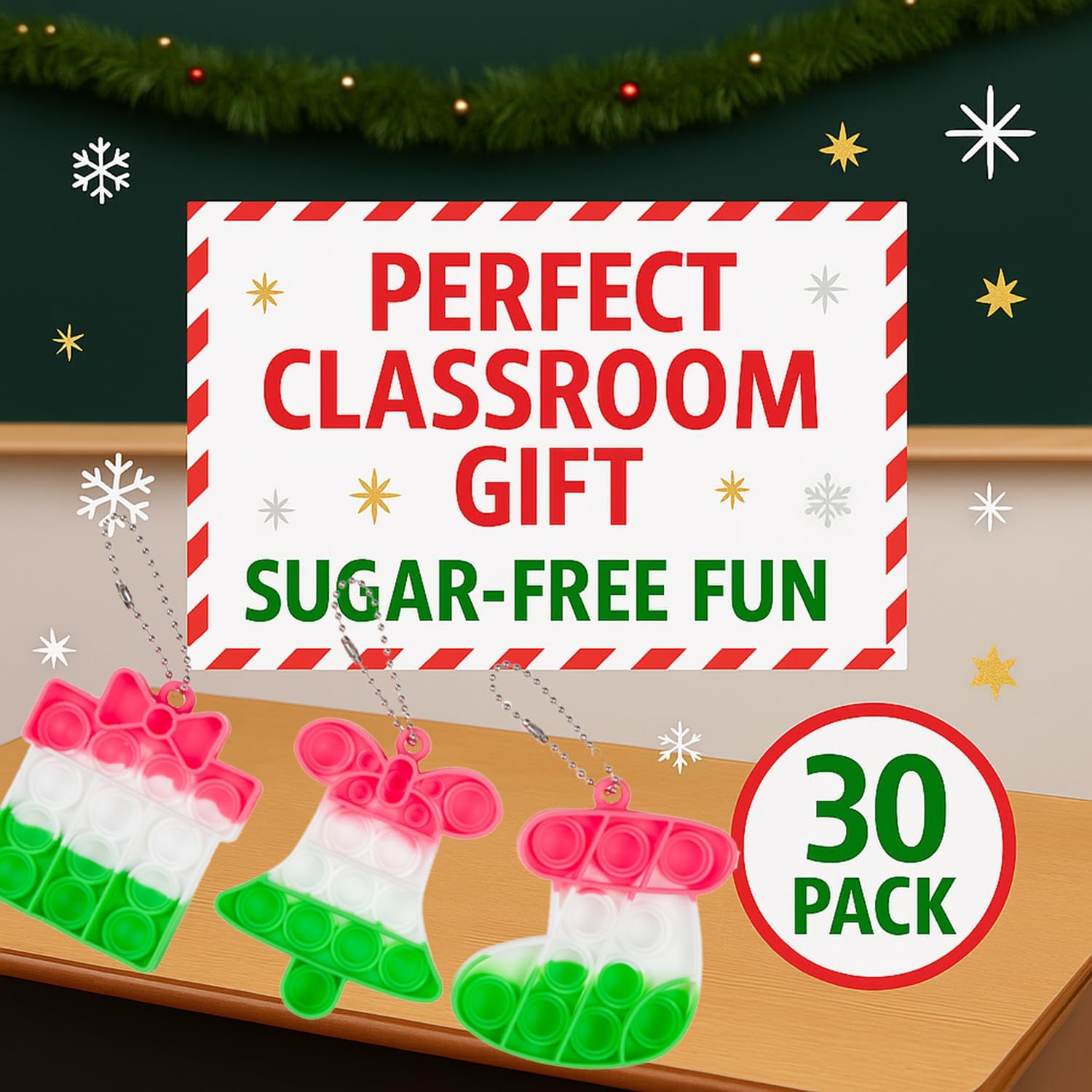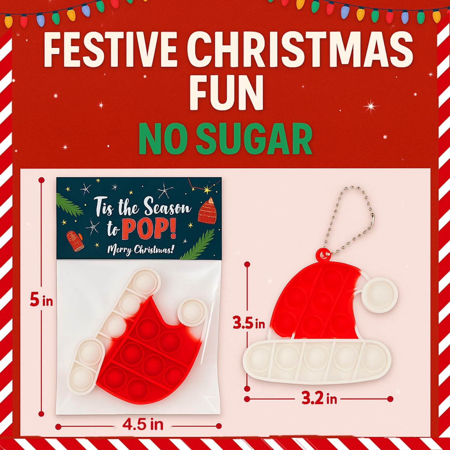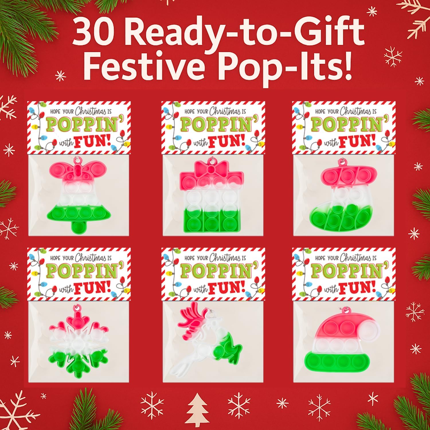 BULK VALUE PACK: Set consists of 24 festive pop-it fidget toys excellent for classroom distribution, vacation events, or workplace present exchanges