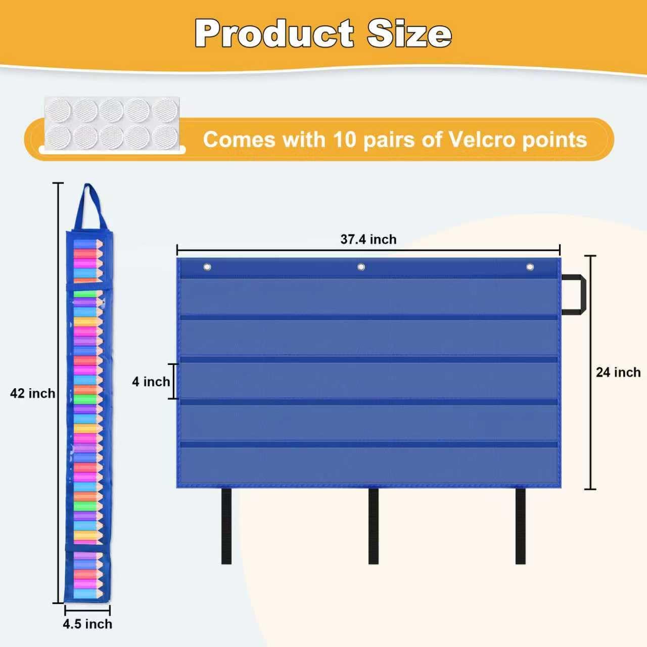 Correct Dimension: Our Storage Pocket Chart have correct dimension, approx. 42 x 24 inches, size together with handles, with 5 clear storage pockets (36 x 4 inches), The collapsible design folds right down to 42 inches x 4.5 inches for compact storage