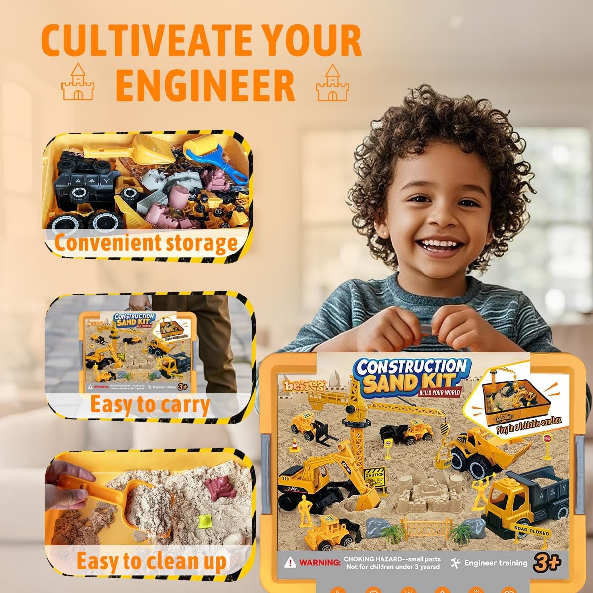 Inventive and Academic: The sand building web site equipment incorporates wealthy truck collections with 9 varieties vans, which might present kids the function of assorted sorts of vans on building websites, permitting kids to simulate actual engineering scenes to extend varied construction-related data, thereby enhancing their cognitive and hands-on talents