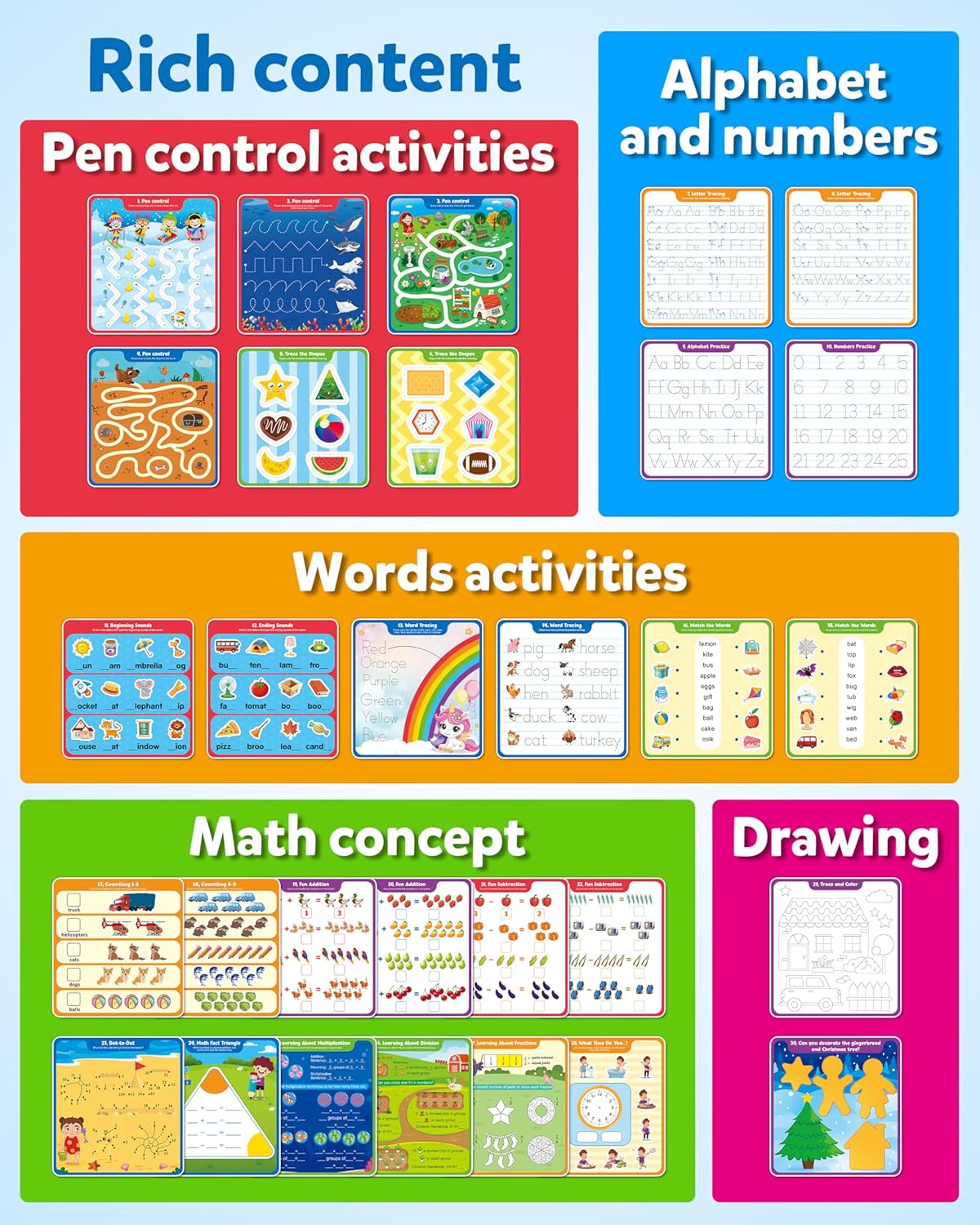 30 Math Studying Actions for 3 4 5 Yr Outdated Children: This preschool alphabet numbers studying exercise set incorporates 15 double sided exercise playing cards, 1 picket board, 8 markers and 1 handbook, providing numerous strategies to apply major math, alphabet and linguistic abilities. This can be a sensible instructional sport toy to assist children with primary abilities whereas making math handwriting studying participating and gratifying.