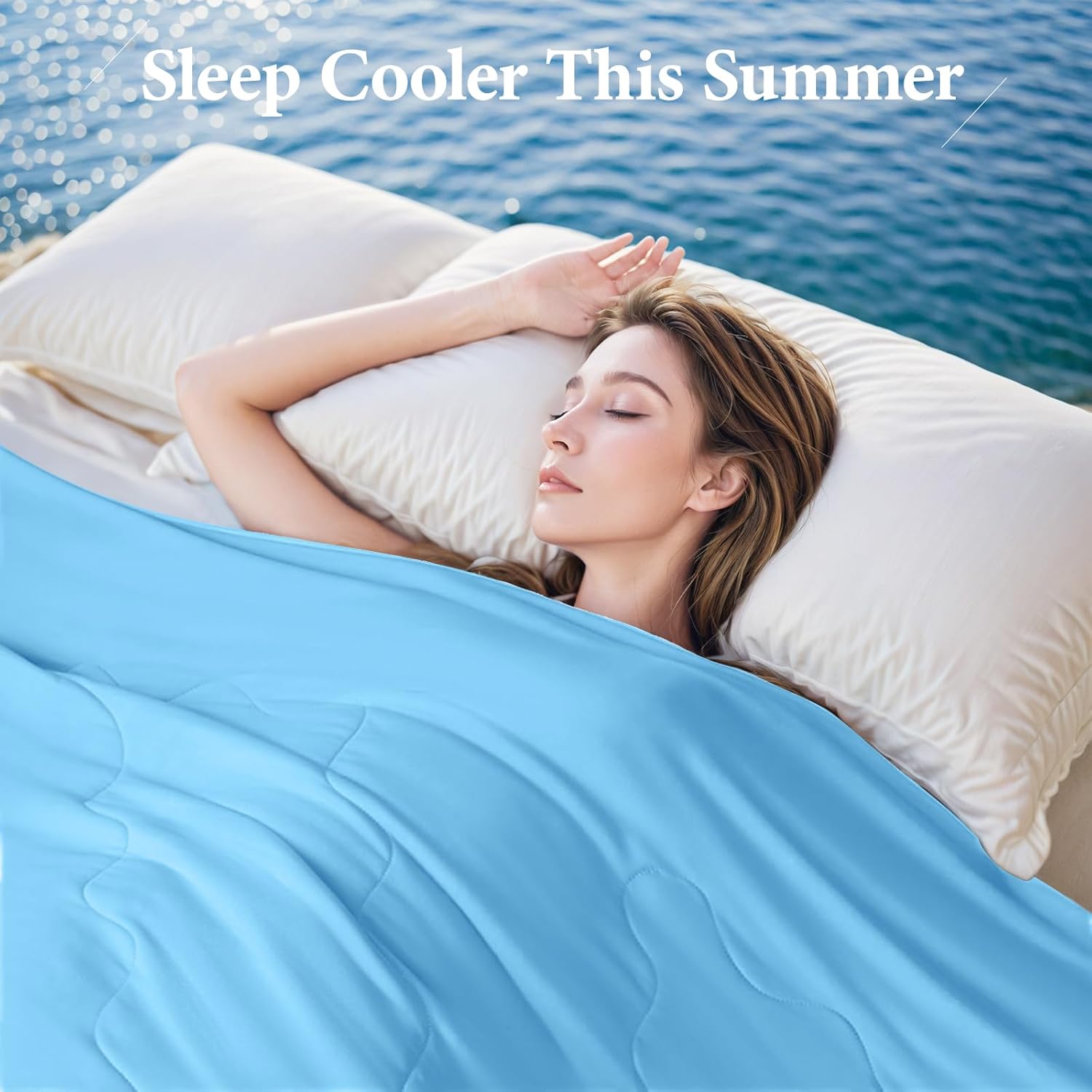 𝐋𝐢𝐠𝐡𝐭𝐰𝐞𝐢𝐠𝐡𝐭 & 𝐈𝐧𝐬𝐭𝐚𝐧𝐭 𝐂𝐨𝐨𝐥𝐢𝐧𝐠: Adopting Japanese Arc-Chill (Q-max>0.45) cooling fibres, this cooling comforter revolutionizes sleep. As soon as lined, your physique’s perceived temperature drops 5°C/41℉ in 5 seconds. This light-weight cooling blanket immediately dispels the sultriness and stickiness of summer time nights, enabling you to sleep soundly in a cool and cozy atmosphere each evening.