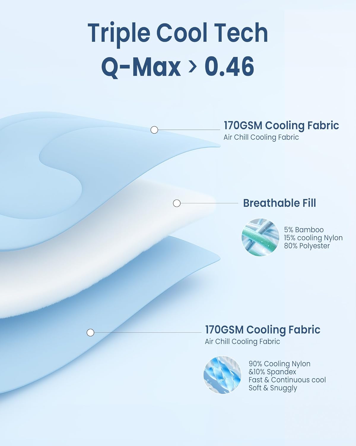 Twin-Sided Cooling Expertise for Summer time Nights: 90% cooling nylon outer cloth + specialised polyester filling work collectively to create a chill-to-the-touch really feel (Q-max >0.46). Lab-tested to assist regulate temperature, very best for heat climates or sizzling sleepers.