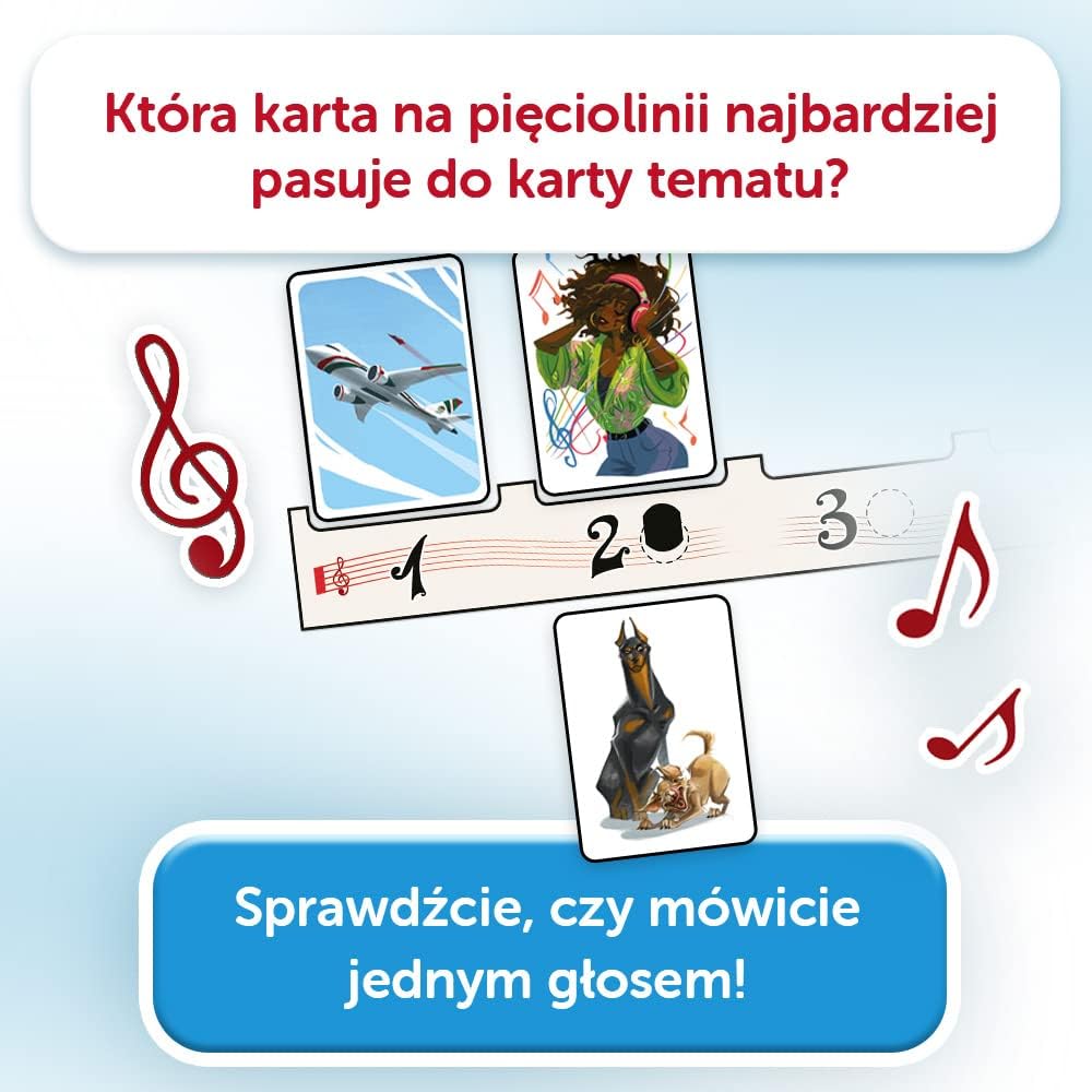 Let’s play is a cooperative celebration recreation that counts artistic considering, empathy and collaboration expertise. Take as members of the superbly tuned orchestra. This is not going to be a straightforward process since you can not talk when giving a live performance! Youngsters can solely focus on their picks throughout intervals between sonats (rounds). All the things to create a good nearer staff! Every of you secretly selects one of many out there pictures on the stave that finest matches your newly assembled theme card and places the precise poll card in entrance of you. You all uncover your decisions on the similar time, hoping you’ll be able to play it with one voice! When you’ve got the identical image – courageous it! You may have performed collectively completely and may go to play one other sonata. The gameplay is for 2-10 gamers and the estimated time is 20 minutes. Opakowanie zawiera: 80 podstawowych kart z motywami, 90 kart do głosowania, 48 dodatkowych kart w podziale na 3 scenariusze, tablica pięciolinii, 10 żetonów prób, 1 tokon linii melodycznej, 1 marknik rundy oraz instrukcję.