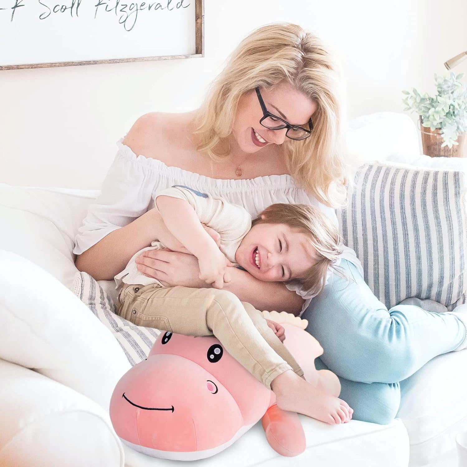 • Cute Dinosaur Stuffed Animal Pillow, Soft Lumbar Back Cushion, Big Plushies, Great Gift for Kids Birthday, Valentine (Pink, 31.4in)