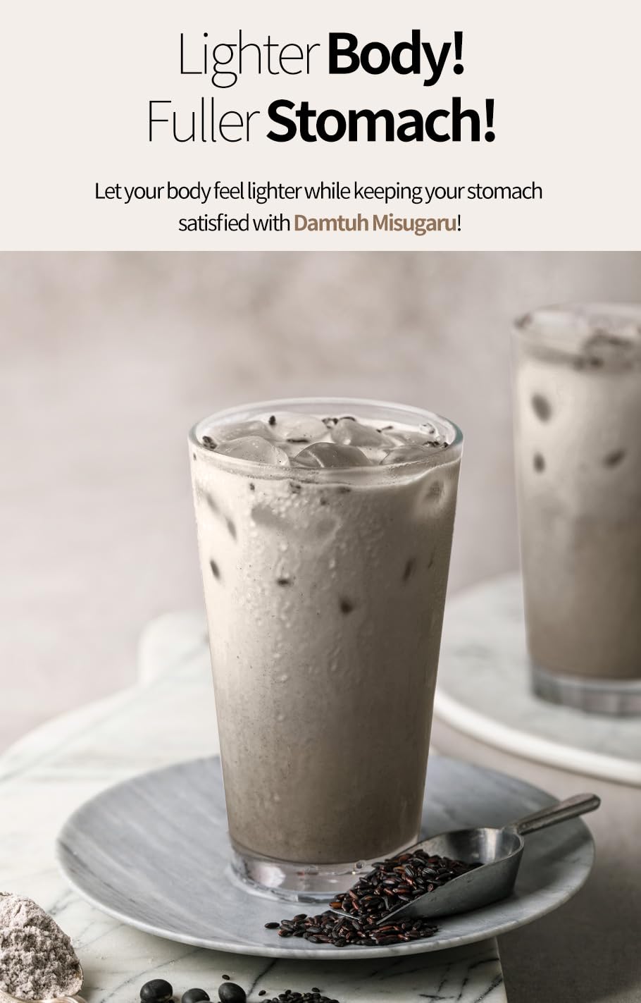 INGREDIENTS: Parched black rice powder, Vegetable cream (Corn syrup, Sunflower oil, Sodium casein, Potassium phosphate dibasic, Potassium Polyphosphate), Sugar, Dextrin, Sprouting black rice powder, Skimmed milk powder, Sizzling air-dried black rice, Black bean powder, Black sesame grain combine (Black sesame, Rice powder, Alpha brown rice powder), Refined salt