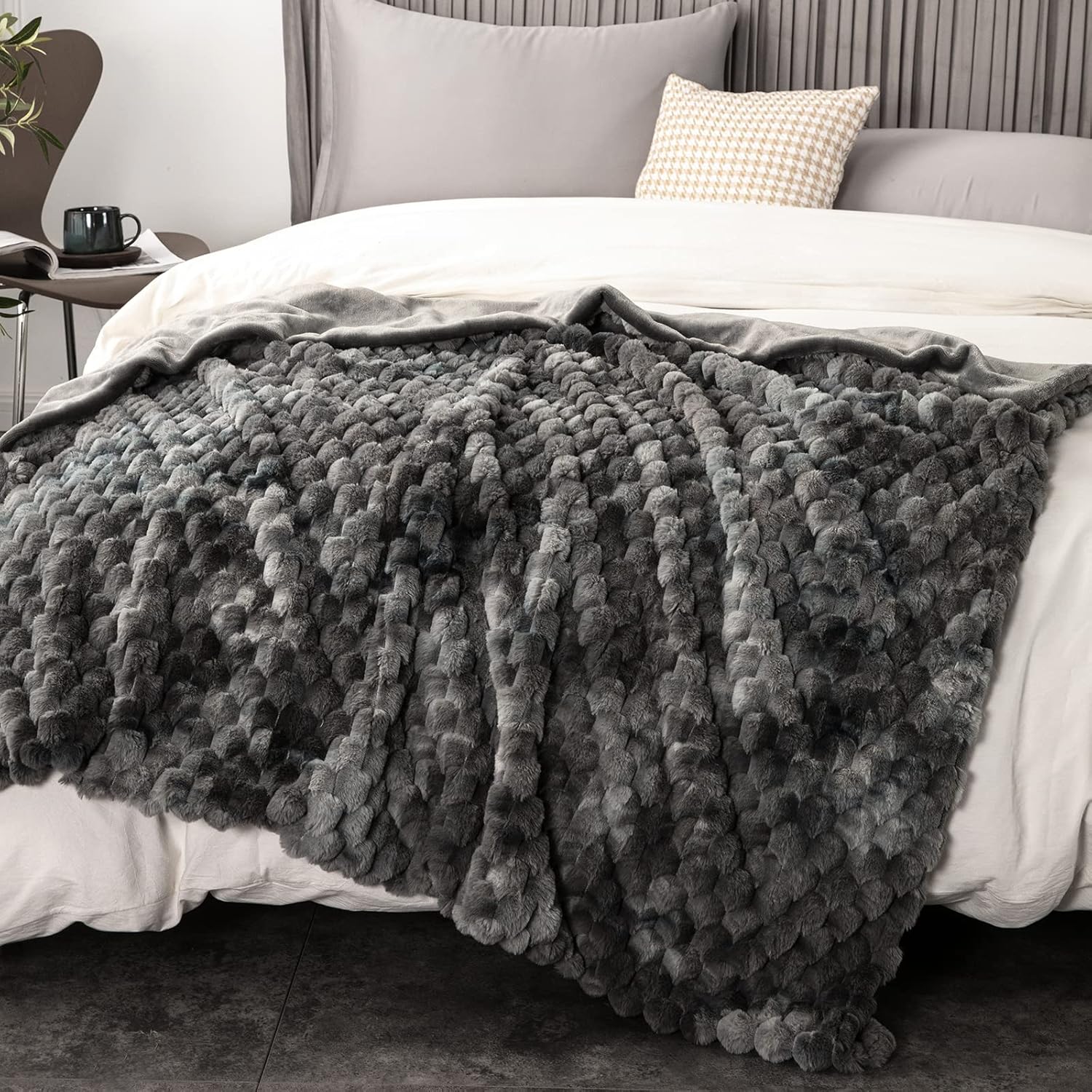 DaysU Tie-Dyed Faux Fur Throw Blanket, Decorative Diamond Textured Fluffy Plush Fleece Blanket, Double-Layered Reversible Cozy Soft Fuzzy Blanket for Couch, Sofa, Bed, 1 Pack, 50” x 60”, Grey
