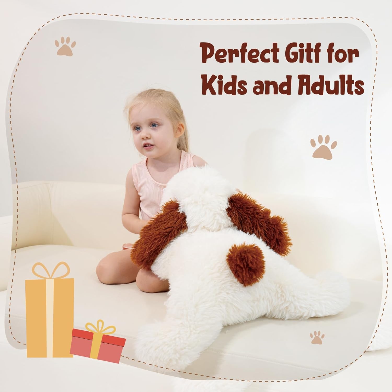 Premium Materials and Meticulous Craftsmanship: Made with mushy materials, this weighted canine plush toy feels delicate and elastic towards the pores and skin. Each element, from the white physique to the brown ears, is rigorously designed. Tremendous stitching ensures sturdiness whereas sustaining a sensible and lovely look