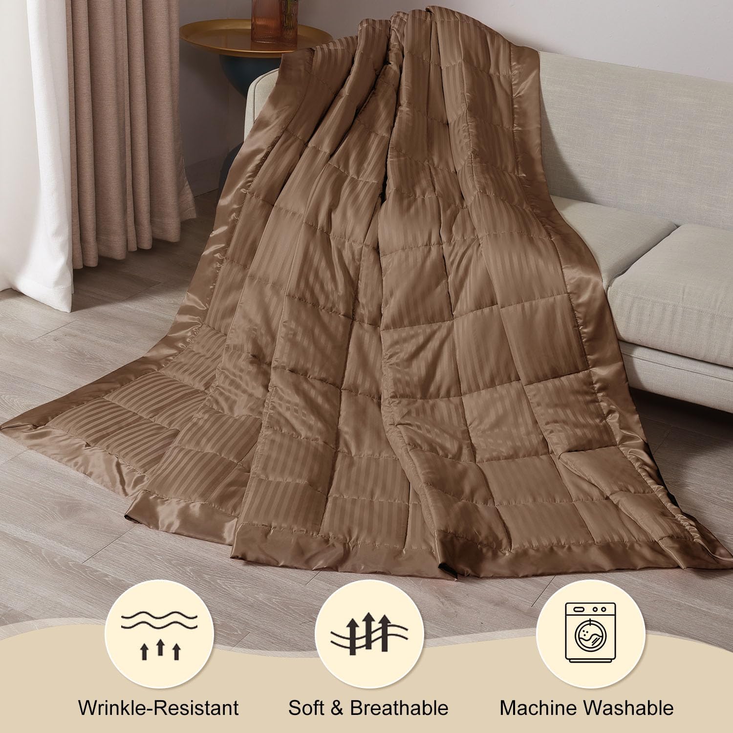 EXQUISITE PATTERN: It adopts beautiful straight stripe jacquard design craftsmanship with 3 inch satin binding. Breathe new life into your room whereas maintain you consolation with an incredible weighted blanket