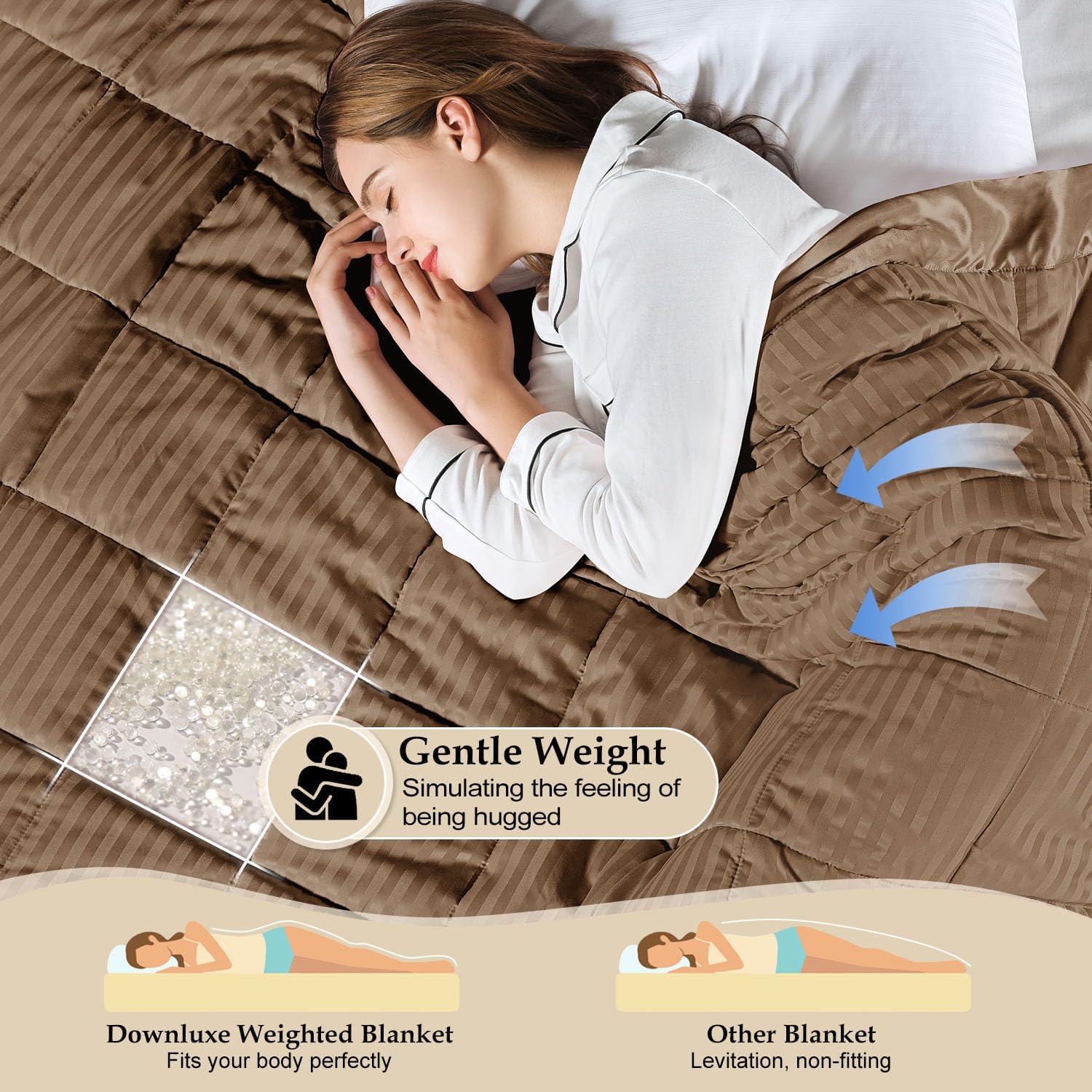 UNIQUE FEELING: You probably have by no means used a weighted blanket earlier than, we advocate you select a blanket that weighs 10%-15% of your physique weight. Our weighted blankets would suit your physique effectively, make you’re feeling like being hugged