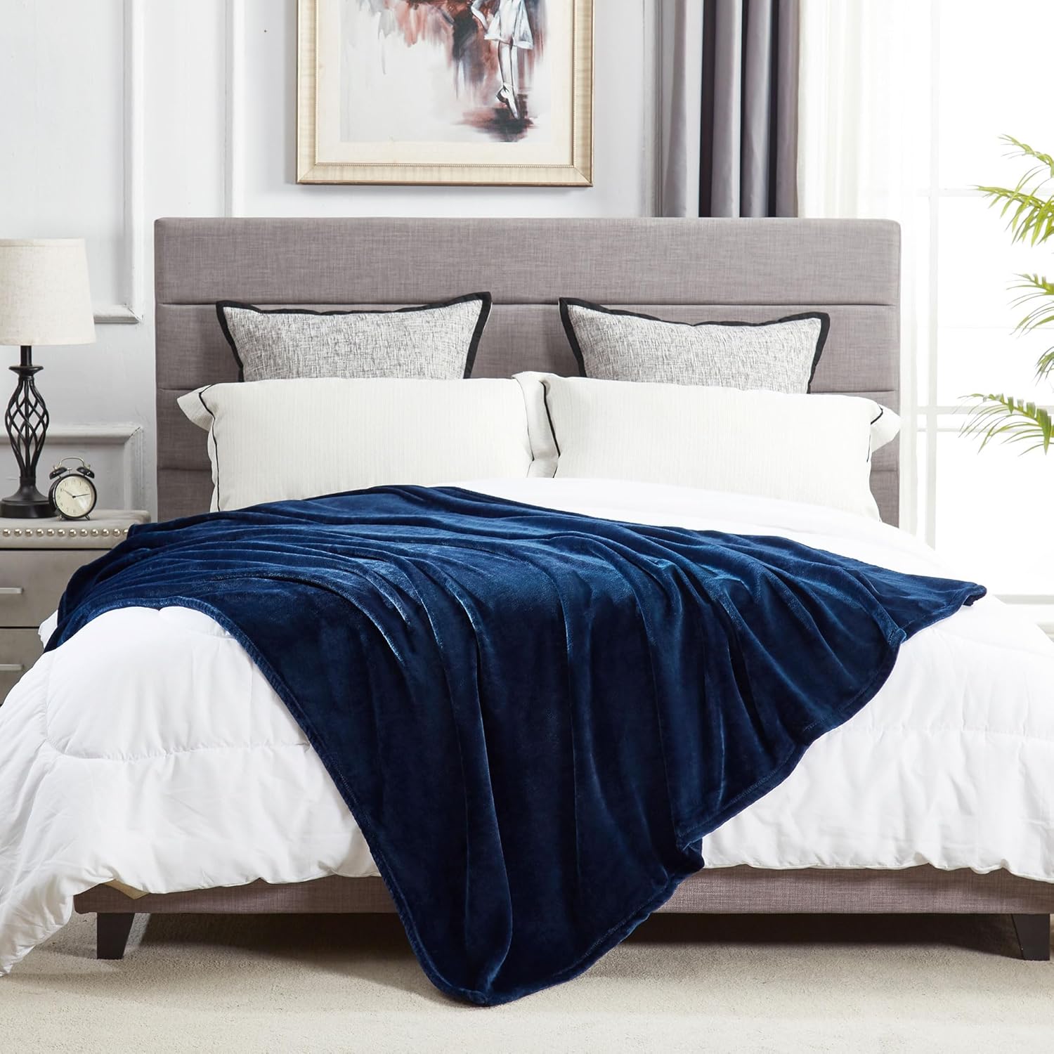 • DREAMNINE Large Soft Plush Fleece Throw Blanket 60″ x 80″, Solid Shag Minky Lightweight Fuzzy Flannel Blanket for Bedroom, Luxury Washable Cozy Warm Velvet Blankets for Couch Sofa, Twin Size,Navy Blue