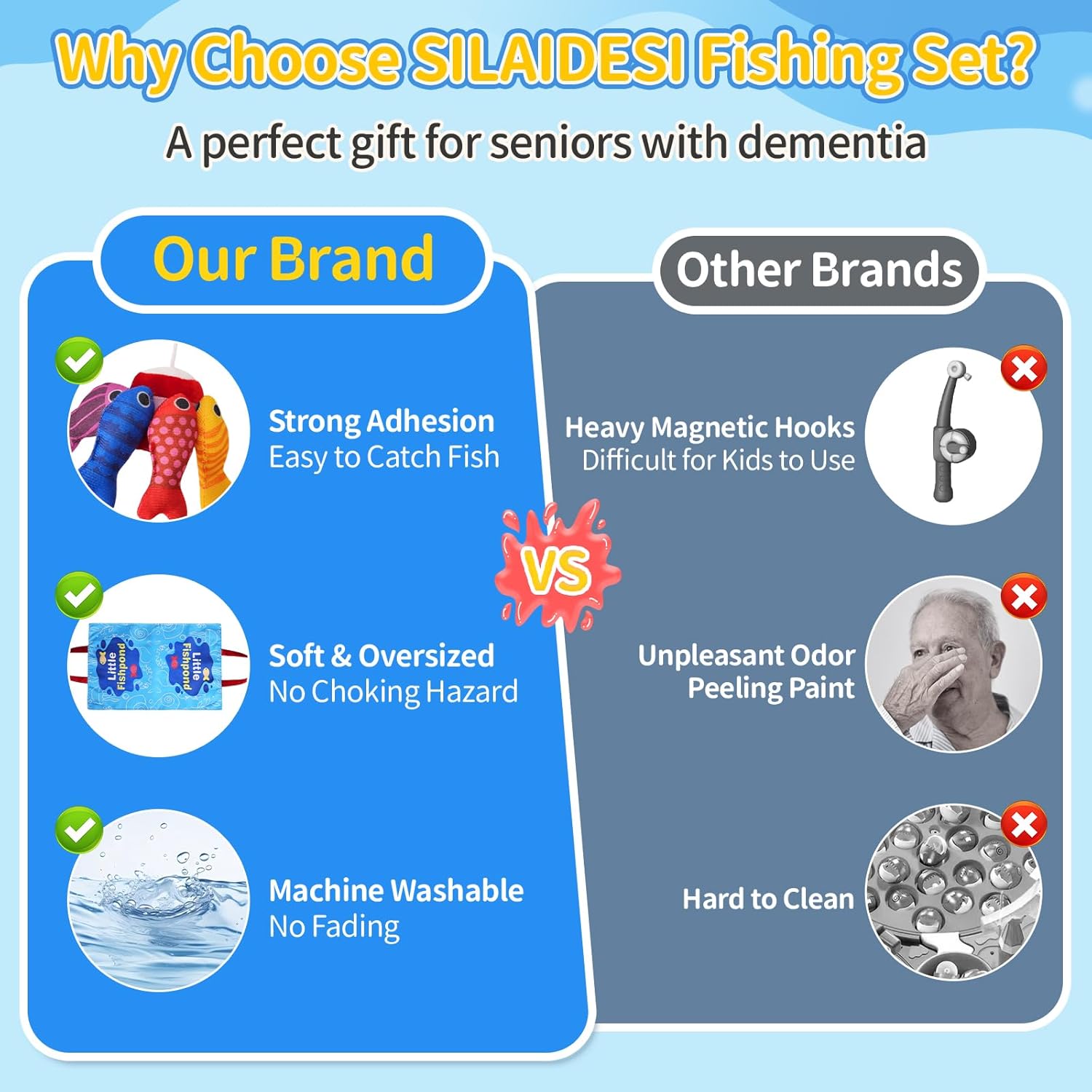 【Designed for Seniors with Cognitive Decline】Helps promote focus, hand-eye coordination, and engagement via acquainted fishing motions.