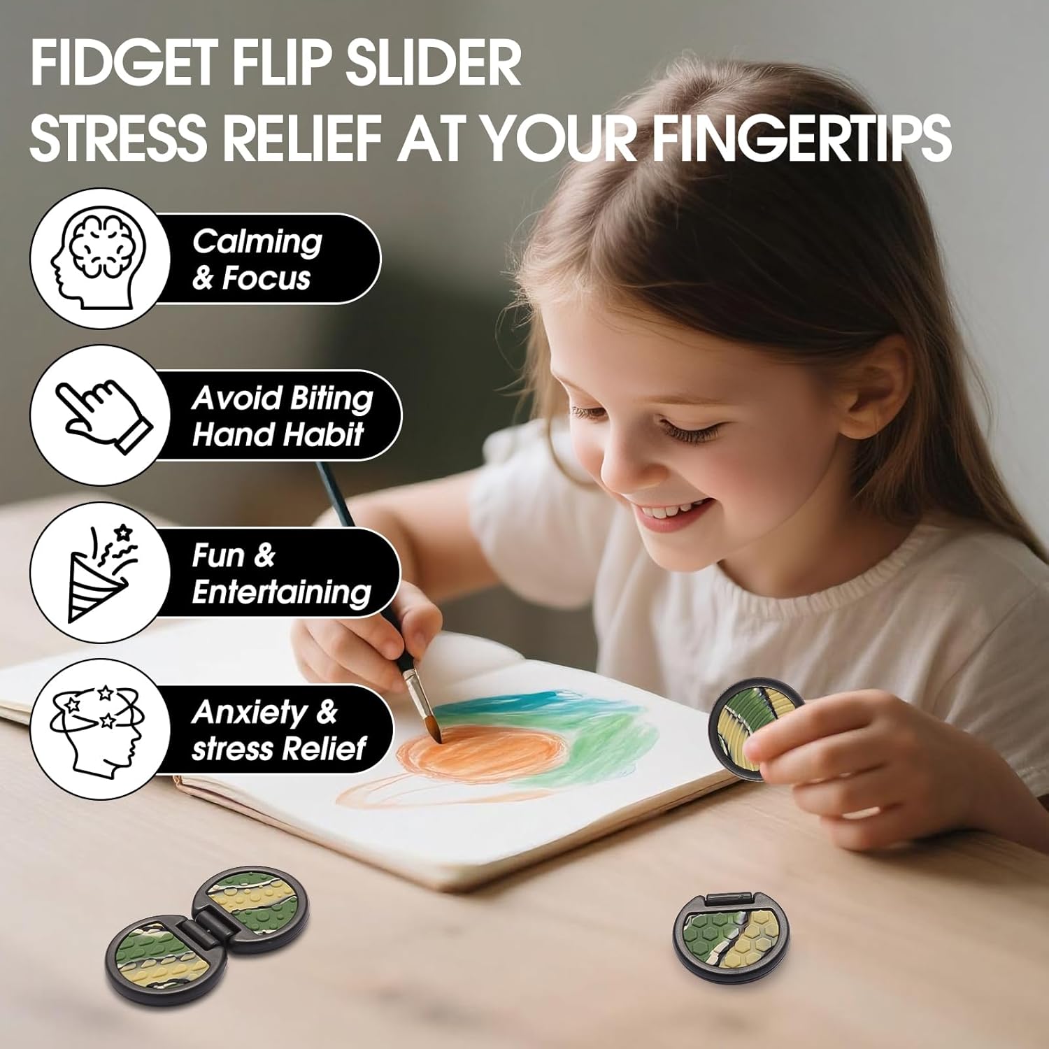 Enjoyable & Stress Aid in One: Our fidget slider presents countless enjoyable; With two sliders that flip, slide, press, and squeeze, fidget toys are the right option to loosen up and entertain; The sensory toys are an ideal companion for lowering stress anytime, wherever