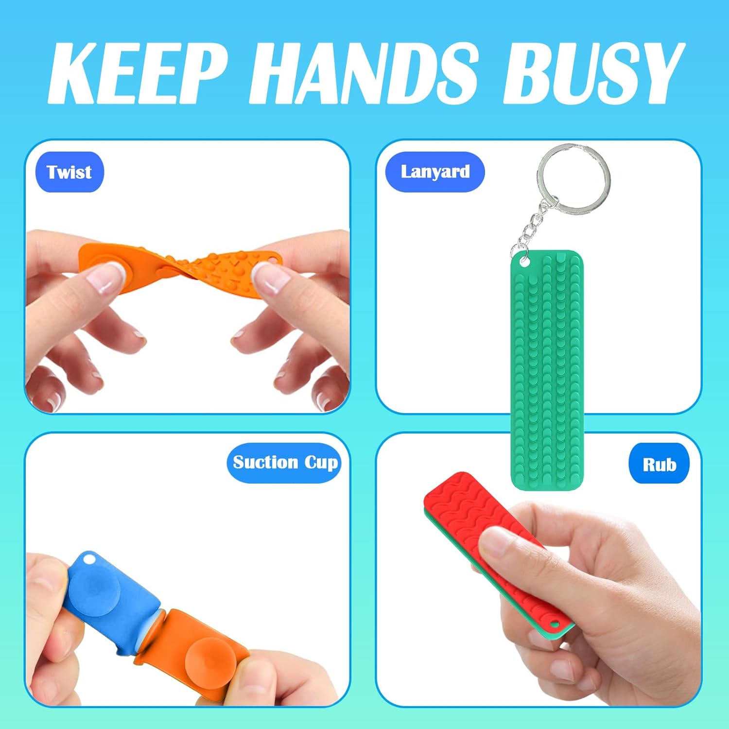 Sensory Fidget Toys: Sensory fidget toys are brightly coloured to draw youngsters’s consideration, with distinctive textured and bumpy designs, which can be snug to the contact, designed to have interaction the kid’s senses, Meet all sensory wants with autism by means of twisting, rubbing and touching these sensory fidget strips stress toys