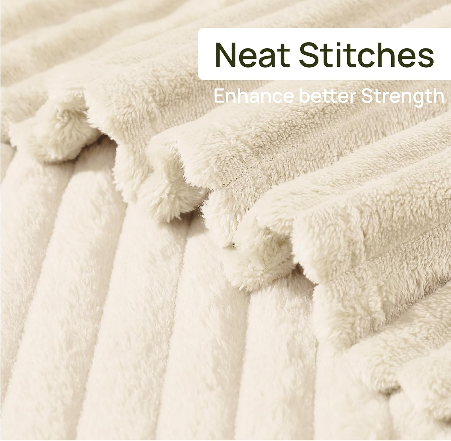 • Geniospin Ivory Fleece Throw Blanket, 280GSM Extra Soft Lightweight Blanket with Strip, Plush Fuzzy Cozy Blankets and Throws for Couch, Bed, Sofa Cozy, Warm and Breathable (60×80 inches)