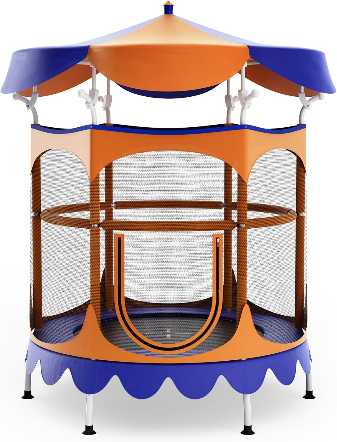 [Built with Safety in Mind]: This ASTM and CPSIA accepted trampoline incorporates a seamless design in order that the spring cowl and leaping mat are sewn collectively, which eliminates potential hazard in addition to extends the leaping space. Plus, the anti-tear enclosure internet gives all-around safety, holding kids leaping safely contained in the trampoline.[Indoor & Outdoor Use]: Giantex carousel-shaped children trampoline comes with a removable shade cowl that’s sun-proof, rain-proof and dust-proof. And the shade cowl is made with a robust joint and has a agency reference to the online poles. The sturdiness exams of this trampoline embrace 100,000 jumps and 5000-hour UV resistance, which ensures a long-lasting service life.[Strong Elasticity]: The premium PP leaping mat and galvanized metal springs carry tremendous elasticity and quick rebound, providing children an thrilling trampoline expertise. Max load: 200 lbs. The leaping mat product of breathable material incorporates a non-slip floor to extend friction between the toes and mat, which makes it simpler to regulate the steadiness.[Extra Safety Features]: All internet poles are lined with anti-collision foam sleeves to scale back impression when hitting. The additional center deal with permits youthful children to maintain steadiness whereas leaping. The large U-shaped entrance with double-headed zippers is simple for youths to get out and in of the trampoline.[Super Stable Structure]: Giantex cute leisure trampoline for youths is constructed with a rustproof metallic body, together with 6 arched legs for extremely stability. Moreover, the suction cup toes can keep away from slipping, cut back noise, take up shock and forestall ground abrasion.