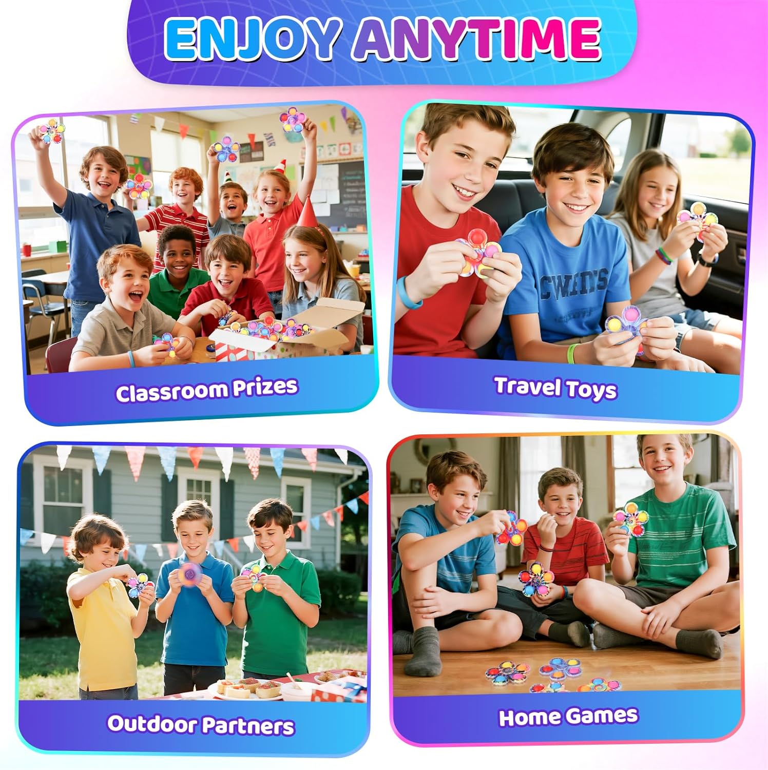 2 in 1 Sensory Pop Fidget Spinner Bulk: Every fidget spinner options delicate silicone pop bubbles that make a satisfying “pop” sound when pressed, delivering tactile stimulation and sensory reduction. With 9 vibrant tie-dye designs, this colourful set sparks visible curiosity and stands out from the gang—there’s a favourite for everybody