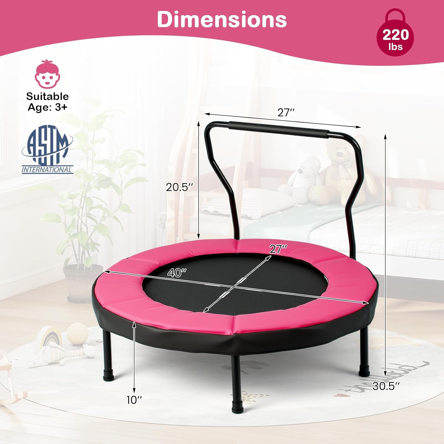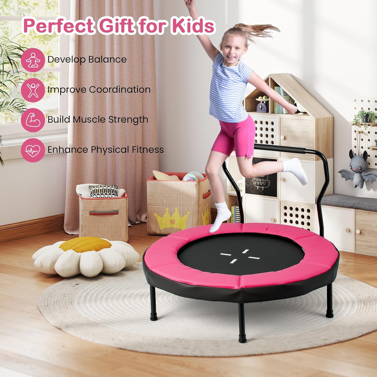 Introducing the final word indoor play resolution on your complete household!The 40″ trampoline for teenagers over 3 is expertly designed to channel boundless power into protected and joyful bouncing. Crafted with high-quality supplies together with a wear-resistant PP leaping mat and 30 heavy-duty springs, it ensures sturdiness and security. The no-gap design with thick EPE foam-cushioned edges and non-slip foot pads enhances security, providing a superior stage of safety in comparison with others with thinner padding, thereby giving mother and father peace of thoughts. Whether or not with or with out the removable foam-covered deal with, your youngsters can enhance their stability, coordination, and total bodily health, all whereas lowering display screen time and maintaining indoor play contained and enjoyable. This trampoline isn’t just a present however a gateway to fostering essential developmental abilities in a safe and entertaining approach. Give your youngsters the present of enjoyable, health, and free-spirited play with our versatile trampoline right now!