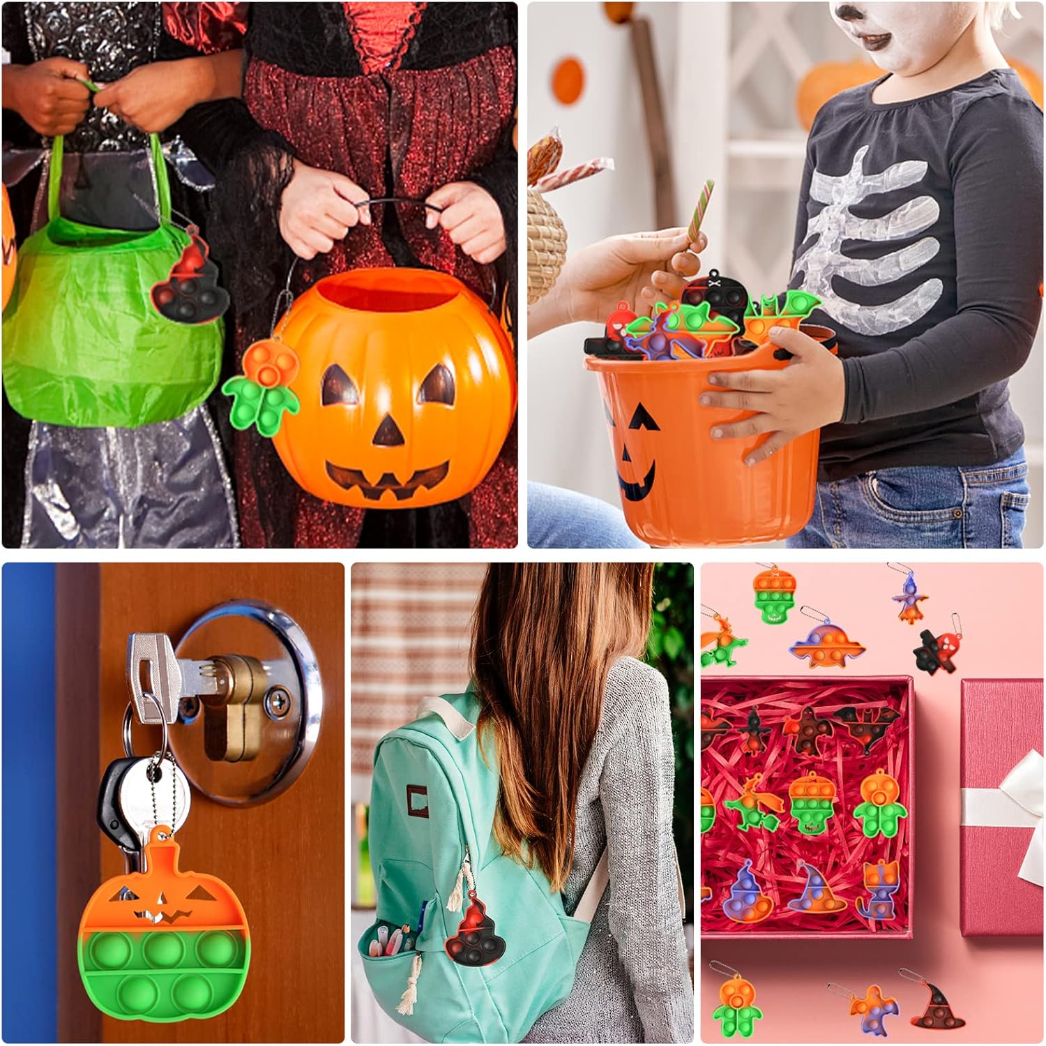 NEWEST HALLOWEEN FIDGET KEYCHAIN TOY: The Halloween pop fidget toys are distinctive designs for Halloween, you’ll get 36 pcs mini pop toys and 12 kinds of pumpkins, bats, ghosts, wizards, skeletons, cross, and witch using a brush and many others, all in Halloween theme, have a enjoyable and pleased Halloween.