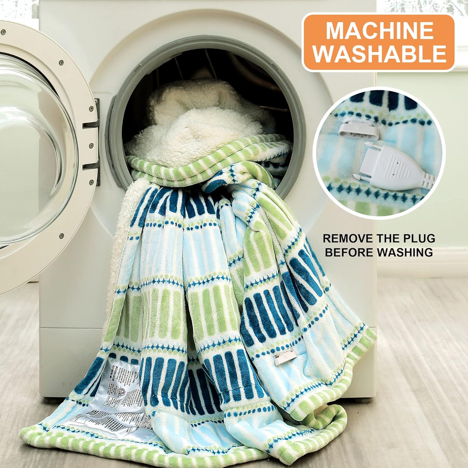 ※Machine Washable※ Our heated throw blanket is machine cleanable.Please take away the plug earlier than washing.